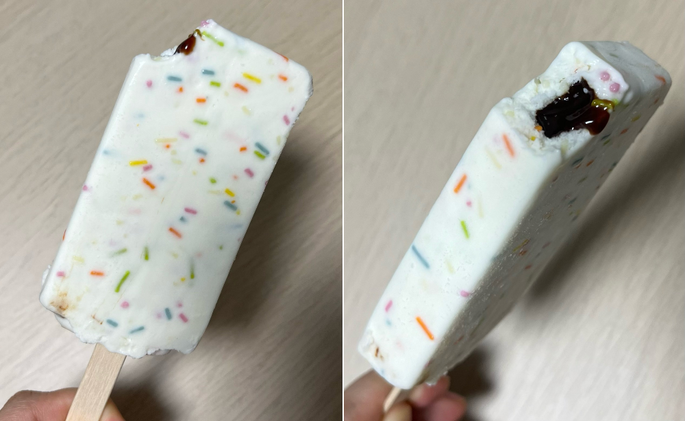 휘핑크림맛 아이스크림에 초코 시럽소스를 넣고, 레인보우 스프링클? 토핑을 아이스크림 전체에 뿌려놓았다. 사실 초코소스는 진짜 조금 들어있긴 하지만, 초콜릿 같은 역할을 하는 레인보우 스프링클이 별미다. 그리고 꽁꽁 얼었을 때보다 살짝 녹은 상태가 더 맛있다. 벌써 마니아층이 생긴 건지 출시된 지 얼마 안 돼서 그런 건지는 모르겠지만, 인기가 정말 많다. 마트에서 뻥 안 치고 2개 남기고 다 쓸어가는 아저씨도 목격함... 그 남은 2개는 내가 후다닥 집어왔다.