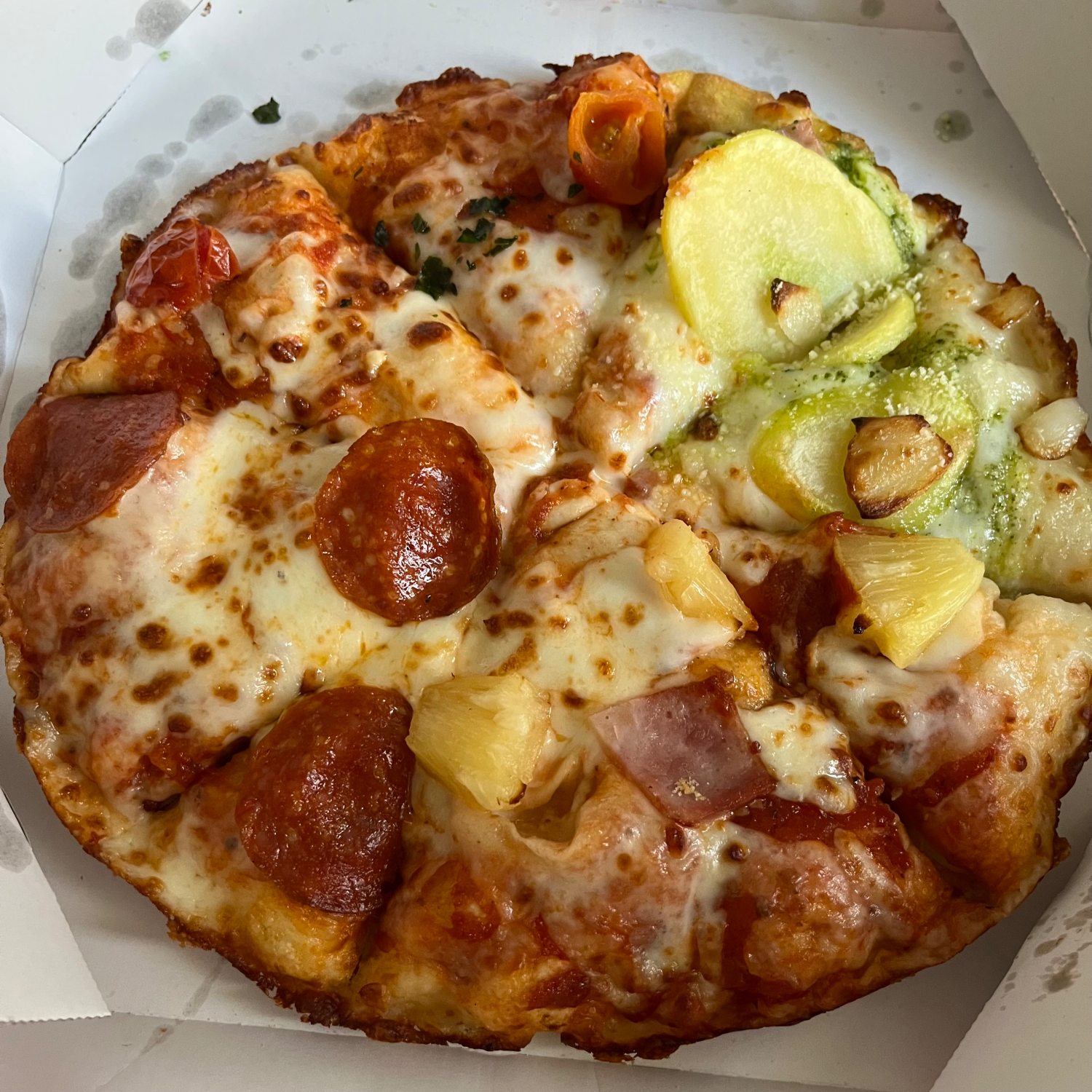 - 팬피자(パンピザ) > (체감상) 디폴트에서 귀퉁이 부분만 없앤 느낌이었음