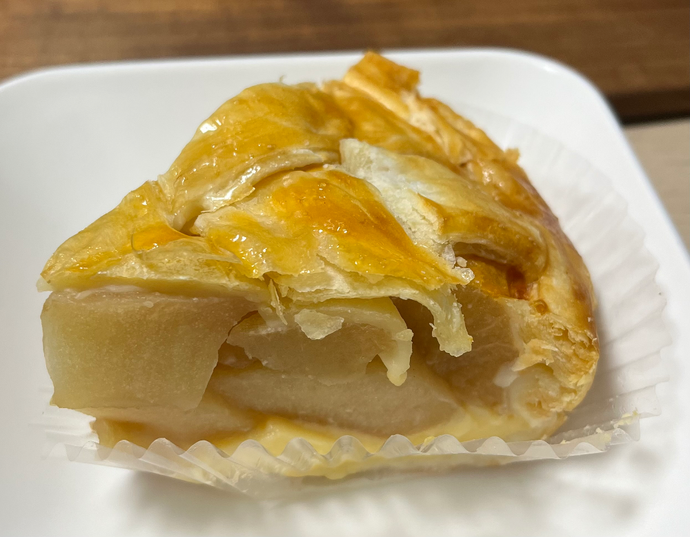 나는 어른의 애플파이를 가장 좋아하는데, 어른의 애플파이는 일반 애플파이에 비해 커스터드 크림 비율이 살짝 적은데, 건포도가 들어가고 시나몬 향이 강하다. 커스터드 크림이 특별히 맛있는지는 잘 모르겠지만 사과의 맛을 방해하지 않아서 좋다. 사과는 시럽에 절여 저서 엄청 부드럽게 씹히는데, 그렇다고 엄청 달지도 않다. 오히려 안단 편에 속한다.