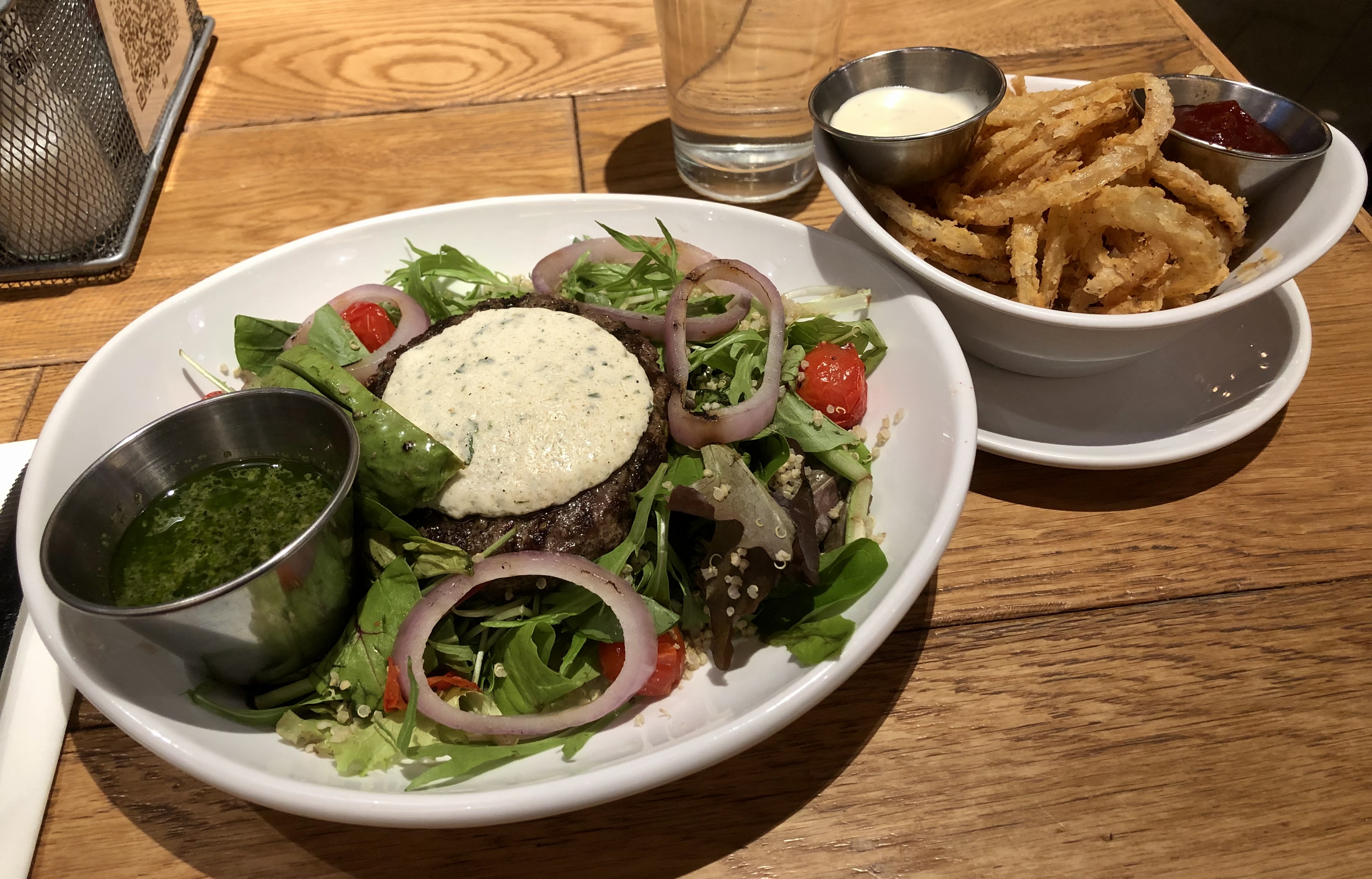 미국식 커스텀 버거 전문점. 빵부터 속재료까지 모든 재료를 커스텀할 수 있다. 빵이 없는 샐러드 버거라는 게 있길래 신박해서 먹어 봤다. 버거가 아니고 그냥 풀떼기와 함박스테이크이지만, 샐러드 버거라는 이름이 있었으니 그렇게 불러주자. 다음에 가면 진짜 일반적인 상식선의 형태를 가지고 있는 버거를 먹어볼 것이다. 그건 그렇고 어니언링이 너무 맛있었음.