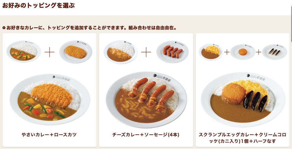 코코이치의 가장 큰 특징은 밥의 양부터 시작하여 카레의 종류, 다양한 토핑, 매운맛의 조정이 가능한 커스터마이즈성이 높은 카레를 제공하고 있다는 것이다.