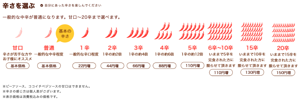 - 맵기 : 컨디션에 따라서 7~10 정도. 매운 카레를 먹고 싶어서 코코이치를 먹는 것이기 때문에 매운에 안 느껴지는 맵기 정도로 먹는 일은 없다.
