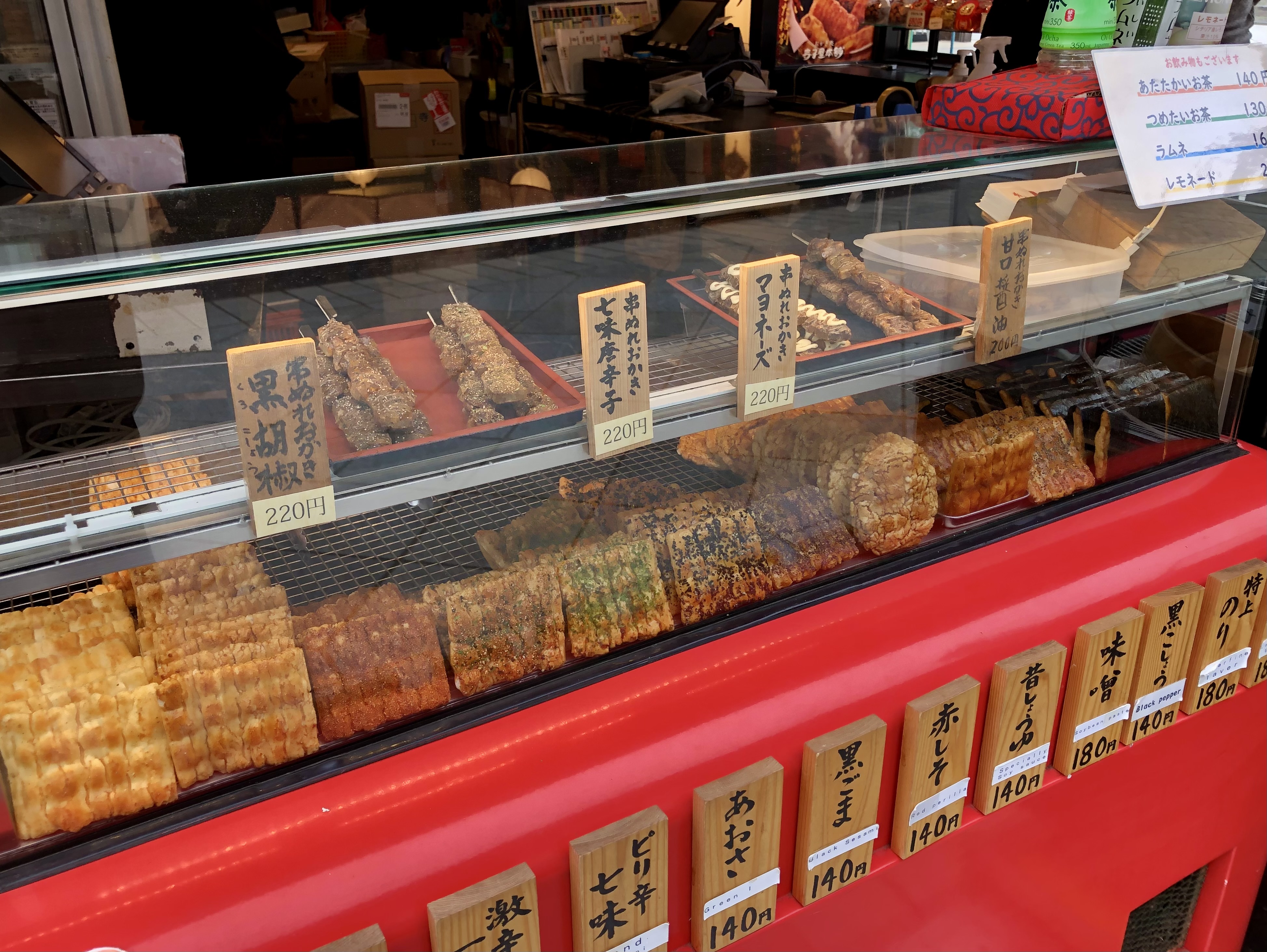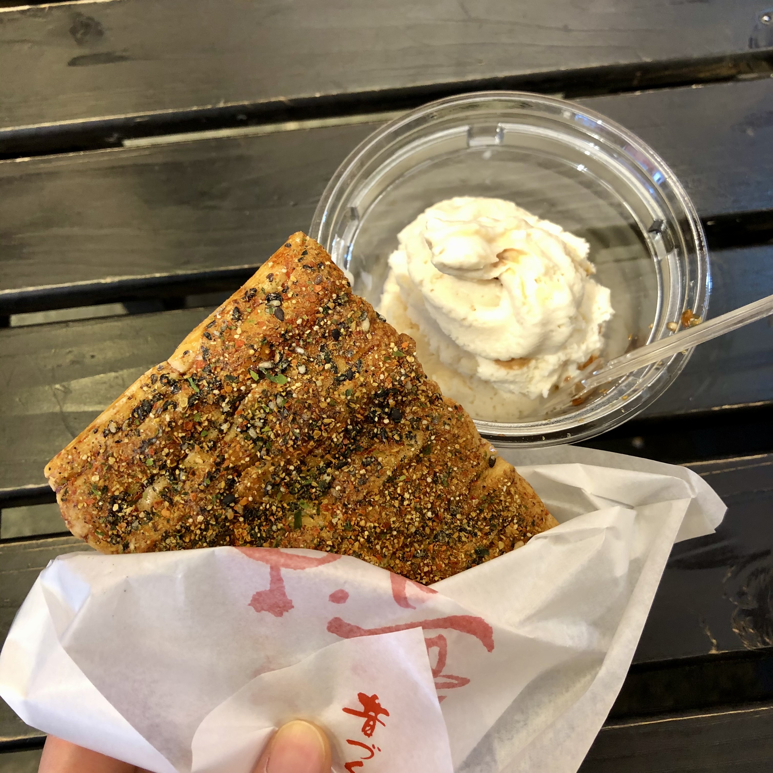 대산문 바로 앞에 있는 오카키 전문점. 테라코야혼포(寺子屋本舗, 공홈)에서 매운 시치미 오카키와 간장 소프트 아이스크림을 먹었다. 입천장이 까지지만 맛있는 오카키... 간장 소프트크림은 처음 보는 아이스크림이라 신기해서 시켜봤는데, 단짠단짠이라 맛있었음.