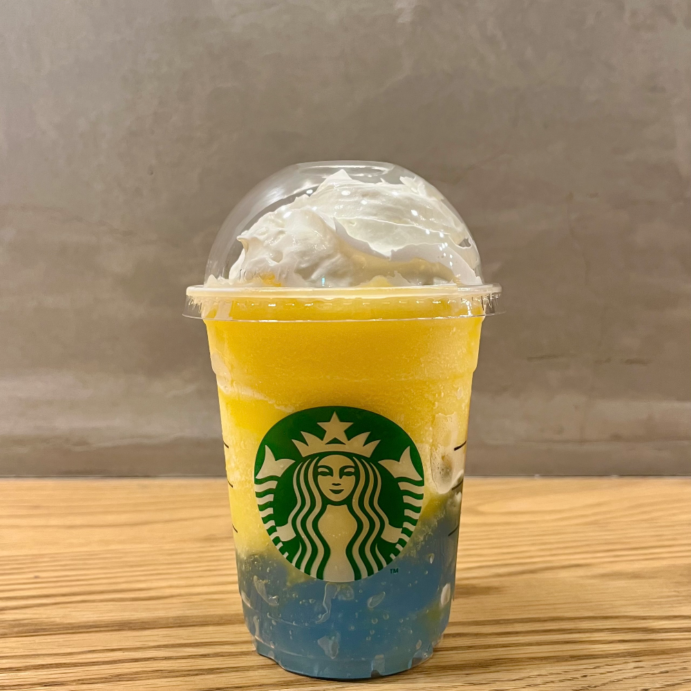 한여름의 해변을 표현한 프라푸치노라고 한다. 모래사장을 표현한 노란색 파인애플 베이스 주스밑에는 바다를 표현한 파란색 씨솔트 젤리를 깔았고, 위에는 구름을 표현한 휘핑크림을 깔았다.