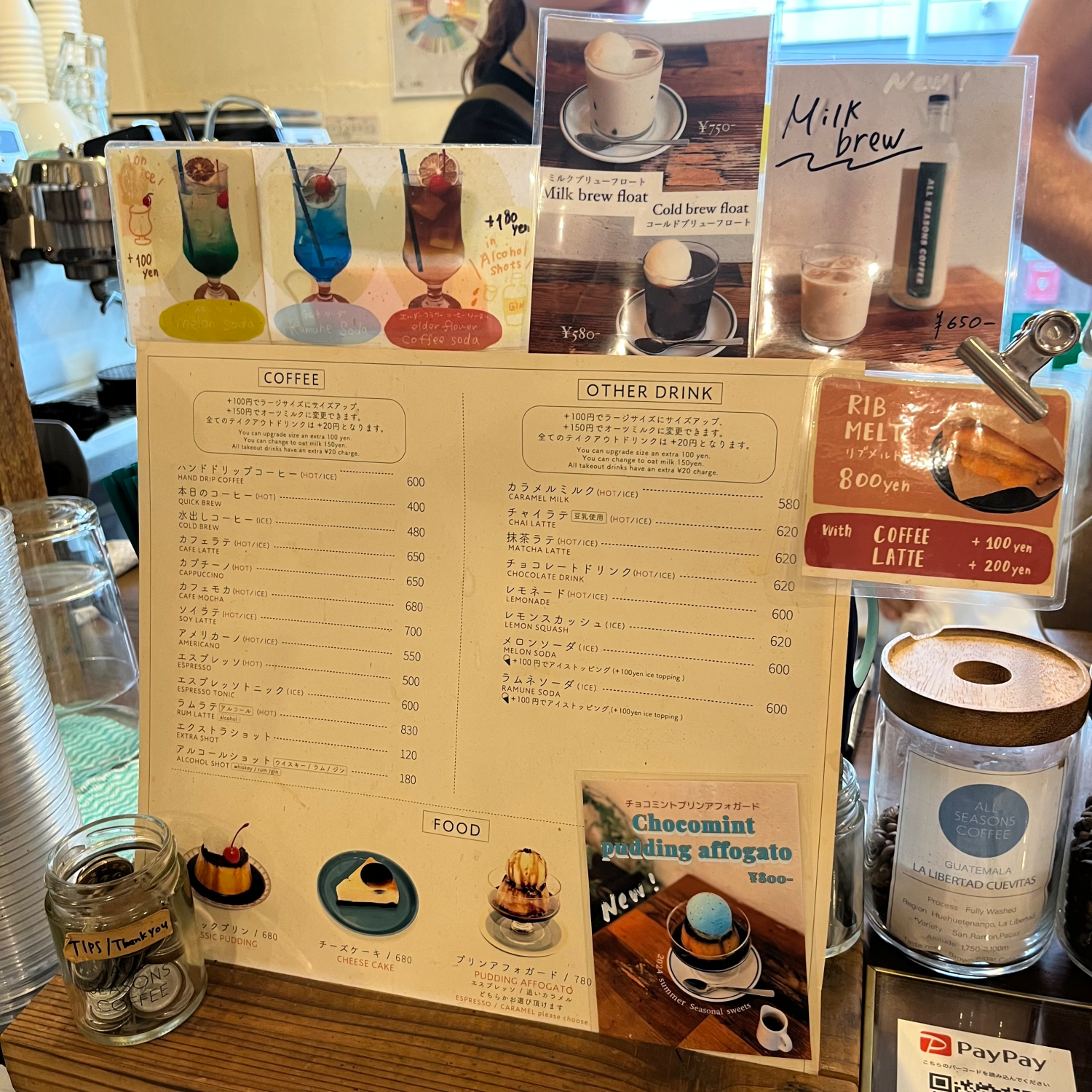한국인들한테 푸딩 맛집으로 유명한 도쿄의 카페, 올 시즌즈 커피 신주쿠점(ALL SEASONS COFFEE, オールシーズンズコーヒー 구글맵)에 드디어 가봤다.