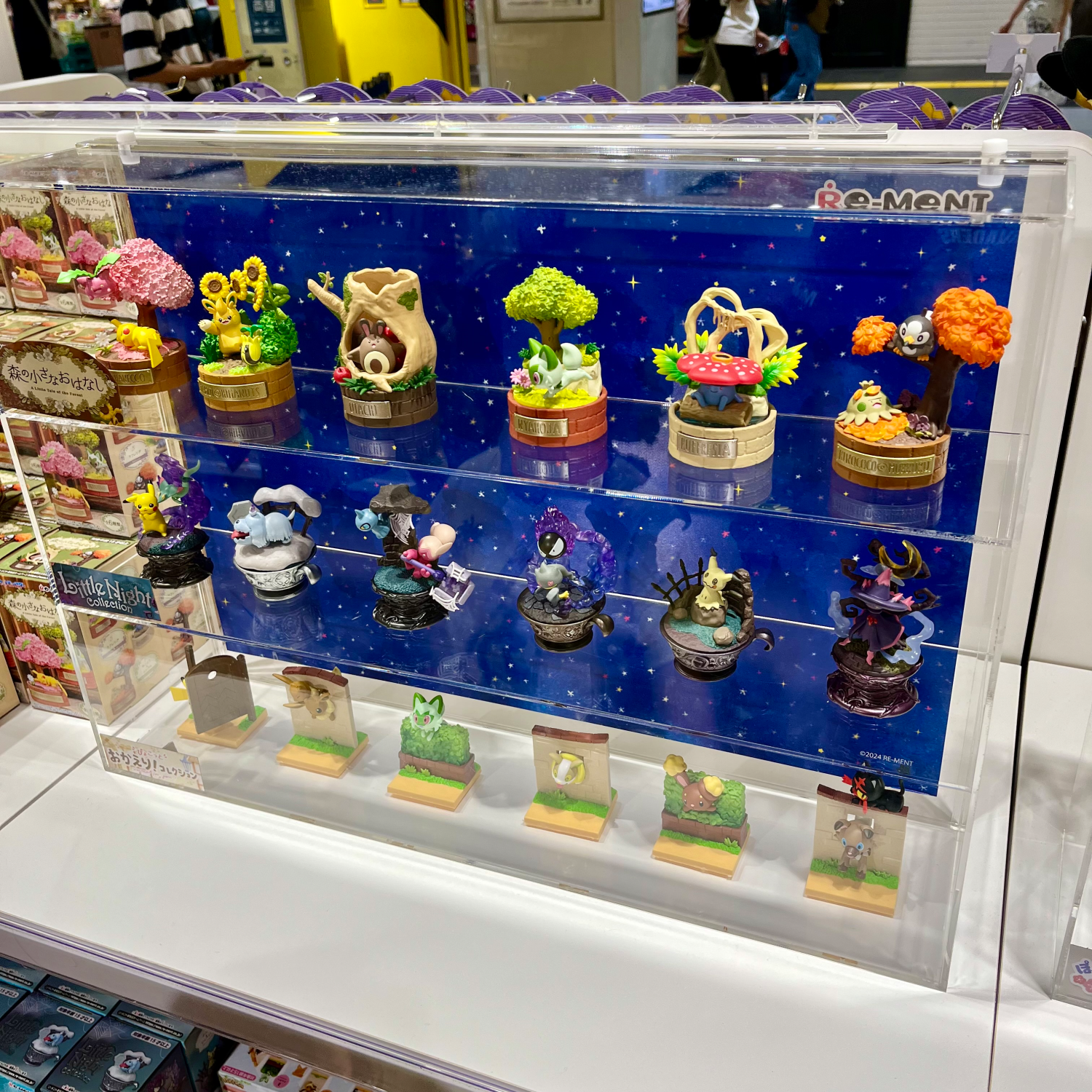 다양한 종류들의 굿즈가 있고 벽을 따라 인형이 빼곡하게 전시되어 있었지만, 내 눈과 마음을 사로잡은 건 바로 포켓몬 랜덤 피규어였으니... 포켓몬 피규어 시리즈는 총 25개(피규어 시리즈 종류 리스트)가 있는데, 2024년도 8월 시점 현재 기준 도쿄역점에서 살 수 있는 건 이하의 6종류였다.
