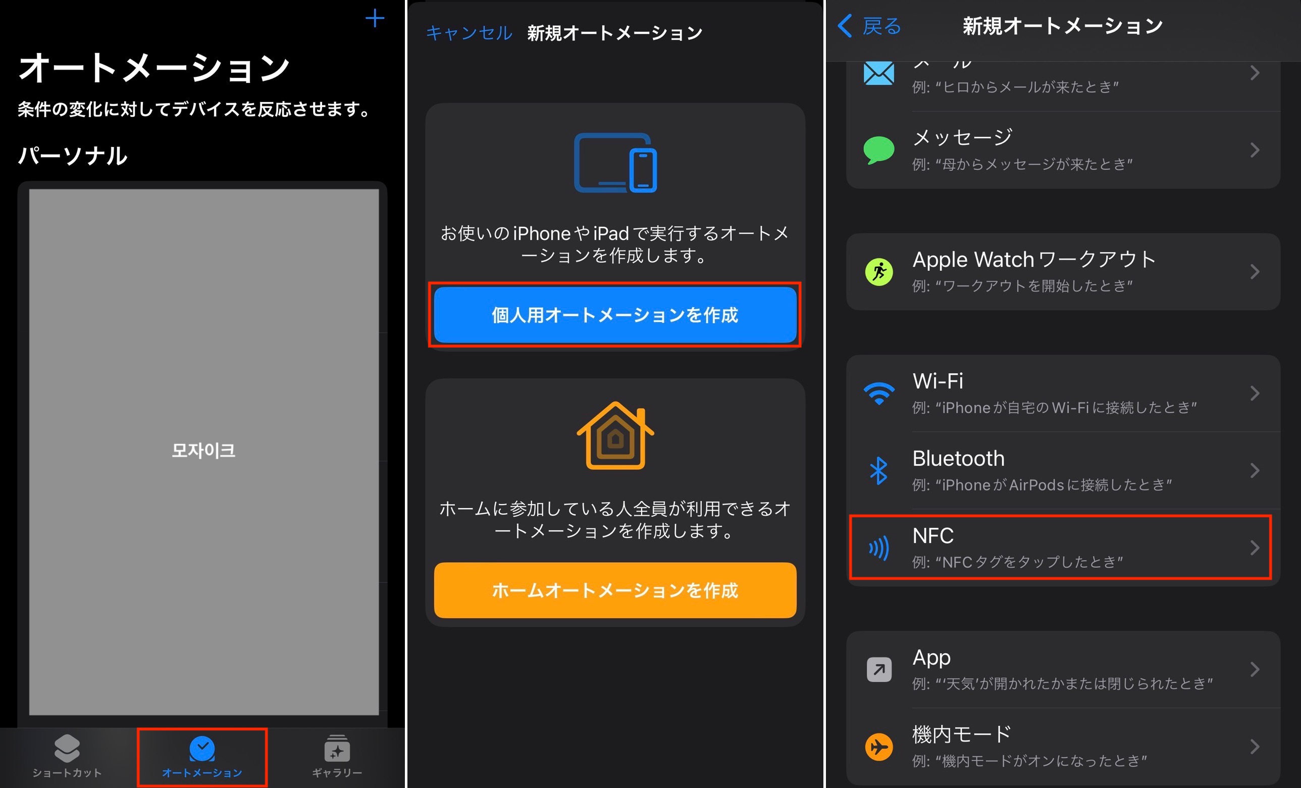 먼저 단축키 - 오토메이션 탭에서, 개인용 오토메이션 작성 - NFC 선택을 해준다.