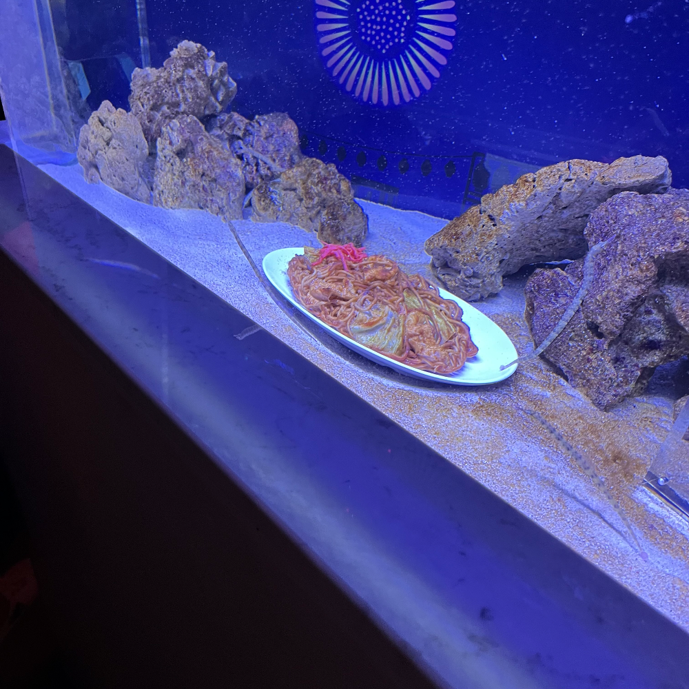 아니 컨셉이 나츠마츠리인 건 알겠는데 수조에 냅다 야키소바를 박아 놓은 게 웃겨서 찍었다 ㅋ ㅋㅋㅋ 타코야끼가 들어간 수조도 있었는데 거기엔 문어가... 있었다... 너무한 거 아니냐고 ㅠ