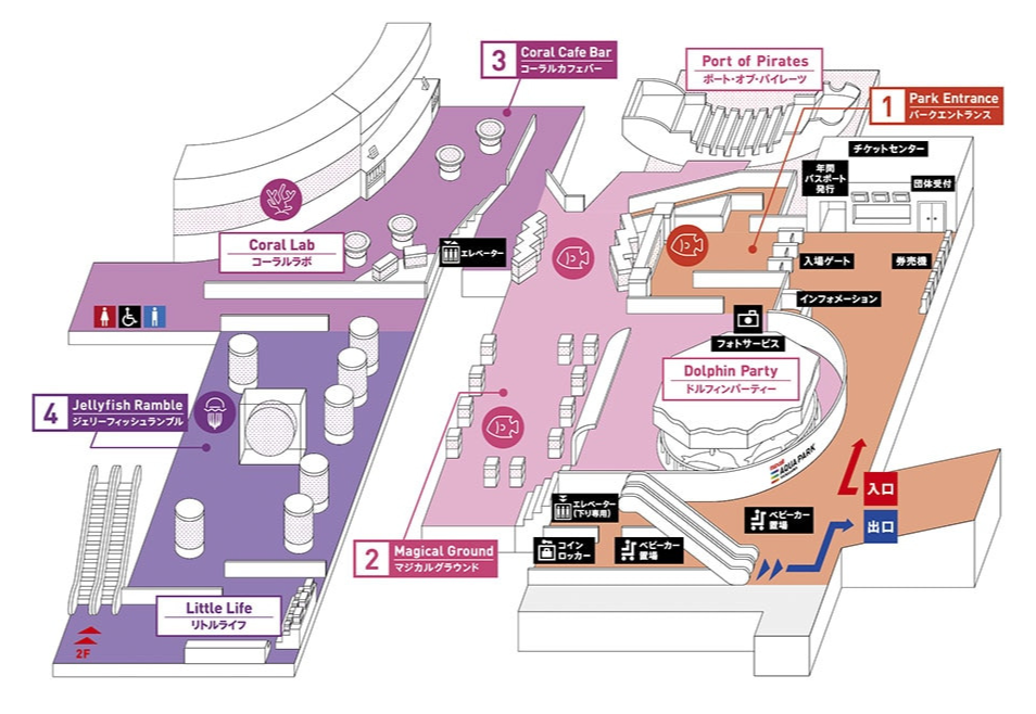 - 10번 friendly square : 야외 광장으로, 시간에 따라 펭귄, 물개, 수달 등의 이벤트가 개최된다.