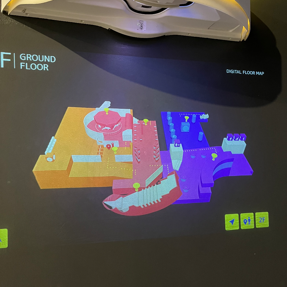 입장권 큐알코드를 찍고 들어오자마자 왼쪽으로 이런 플로어맵 프로젝터가 있다. 터치로 조작할 수 있는 게 신기해서 찍었다.