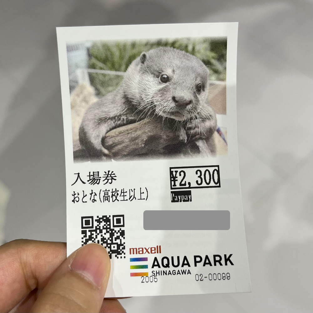 그런데 우리는 이번에 할인권을 사용해야 해서 창구로 갔다. 우리 회사의 작고 귀여운 복지로 200엔 할인받은 가격으로 입장할 수 있었다. 입장권 그림이 귀여운 수달, 카피바라, 펭귄, 해파리 등 다양했다. 중간에 퇴장을 해도 입장권만 있으면 당일에는 재입장이 가능하다.