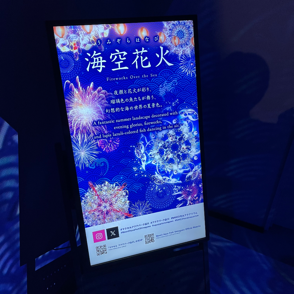 회전목마를 지나서 들어온 첫 전시장은 수중 불꽃놀이 컨셉의 전시공간이었다. 여름이라서 나츠마츠리 컨셉으로 공간을 꾸며 놓은 모양이었다.