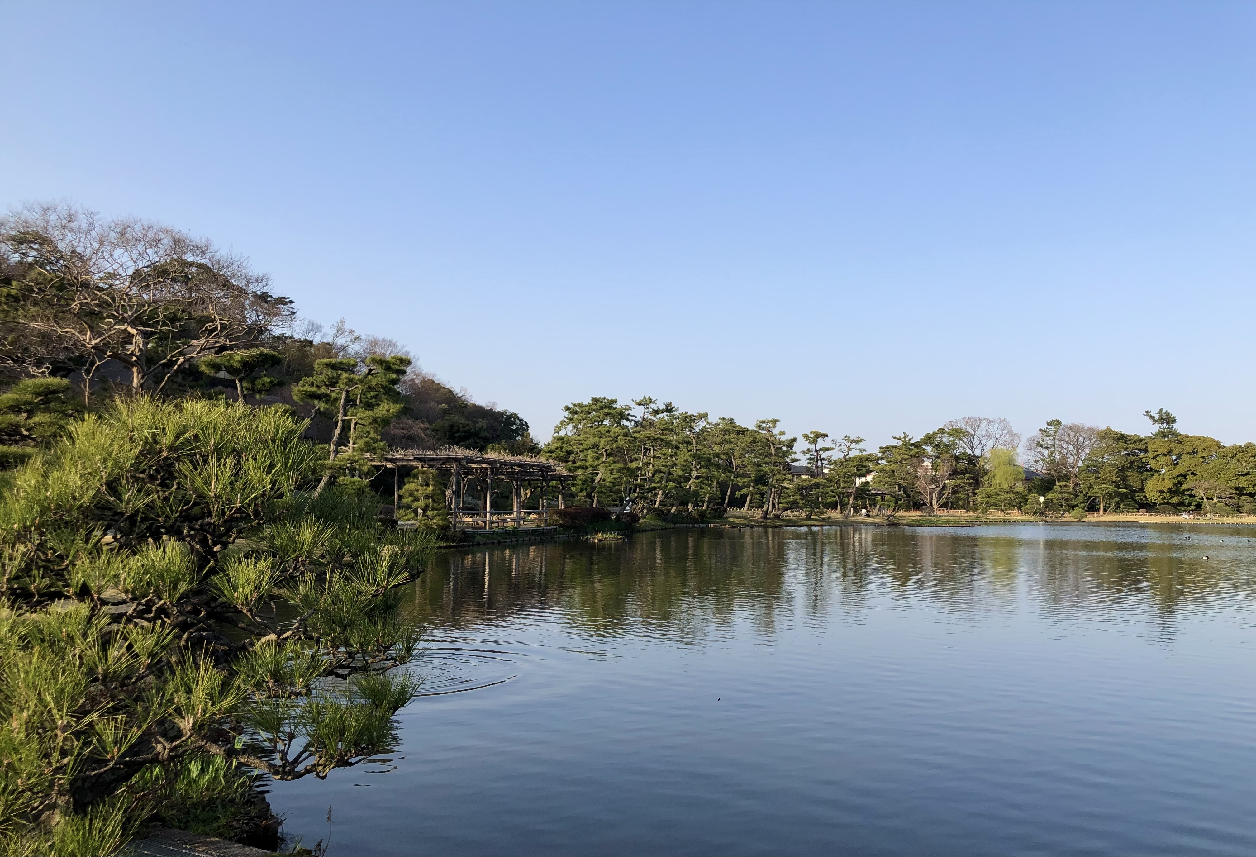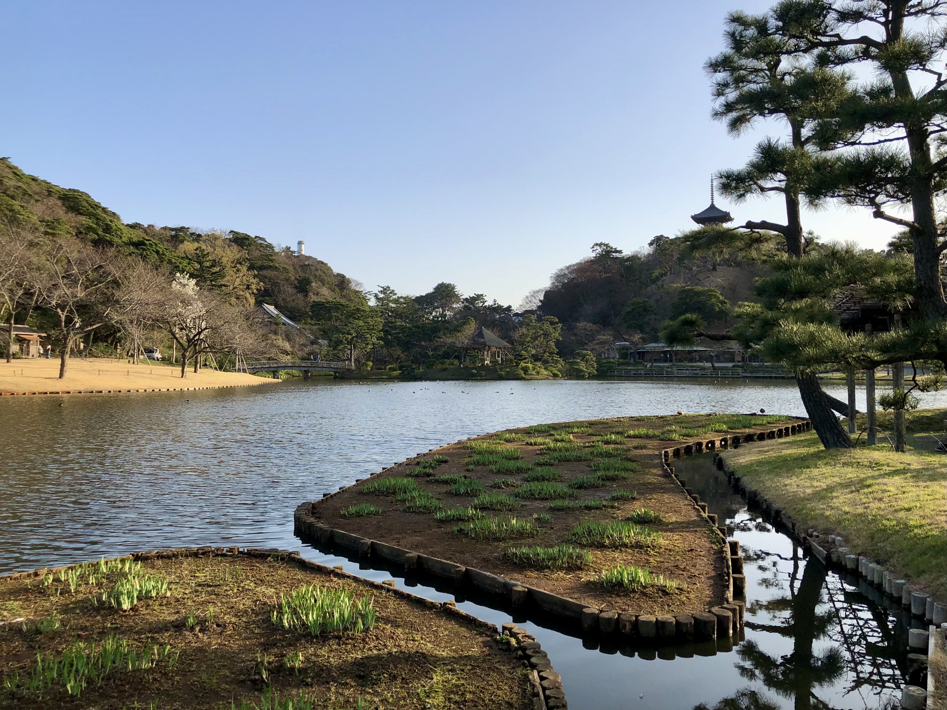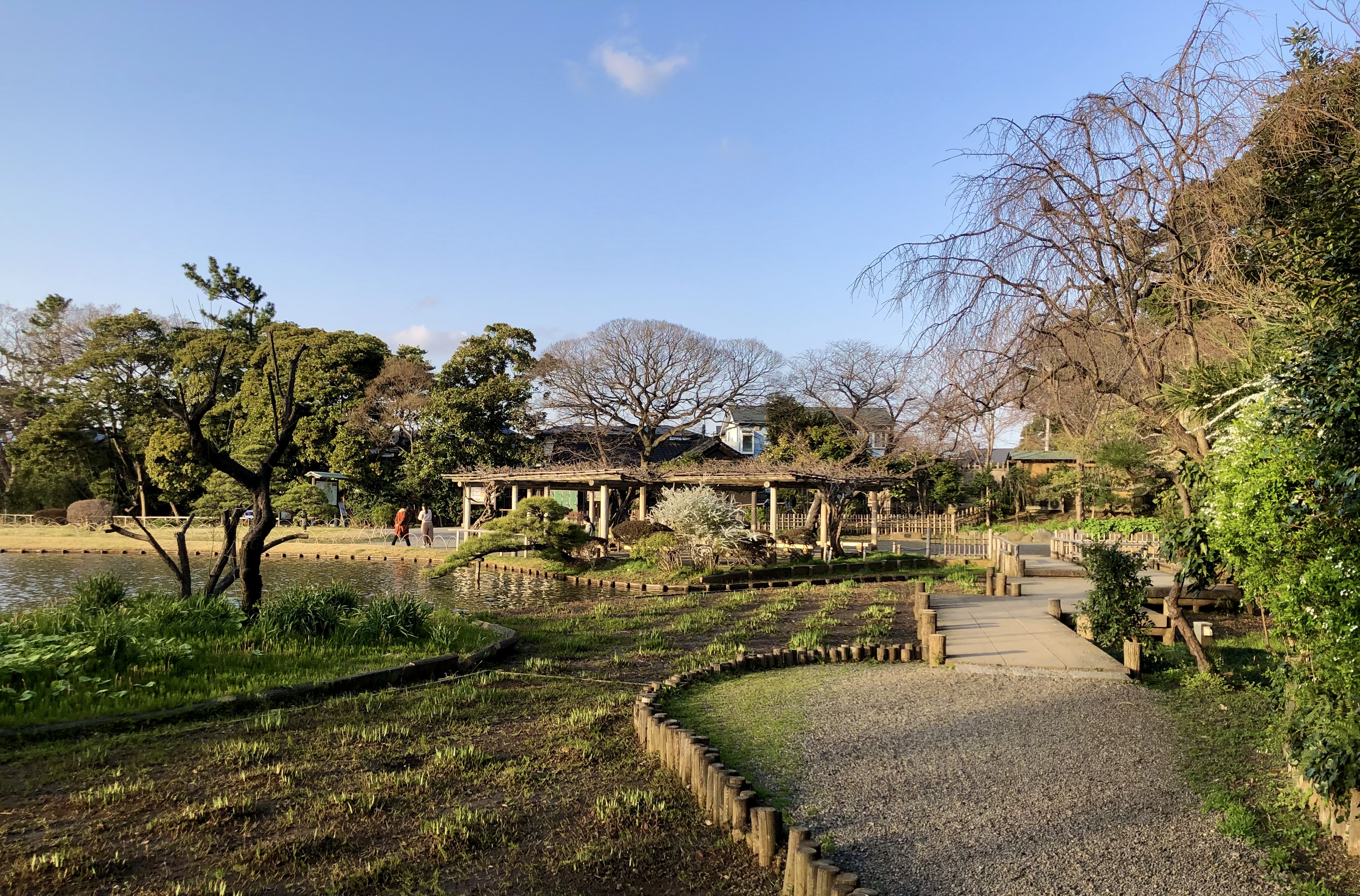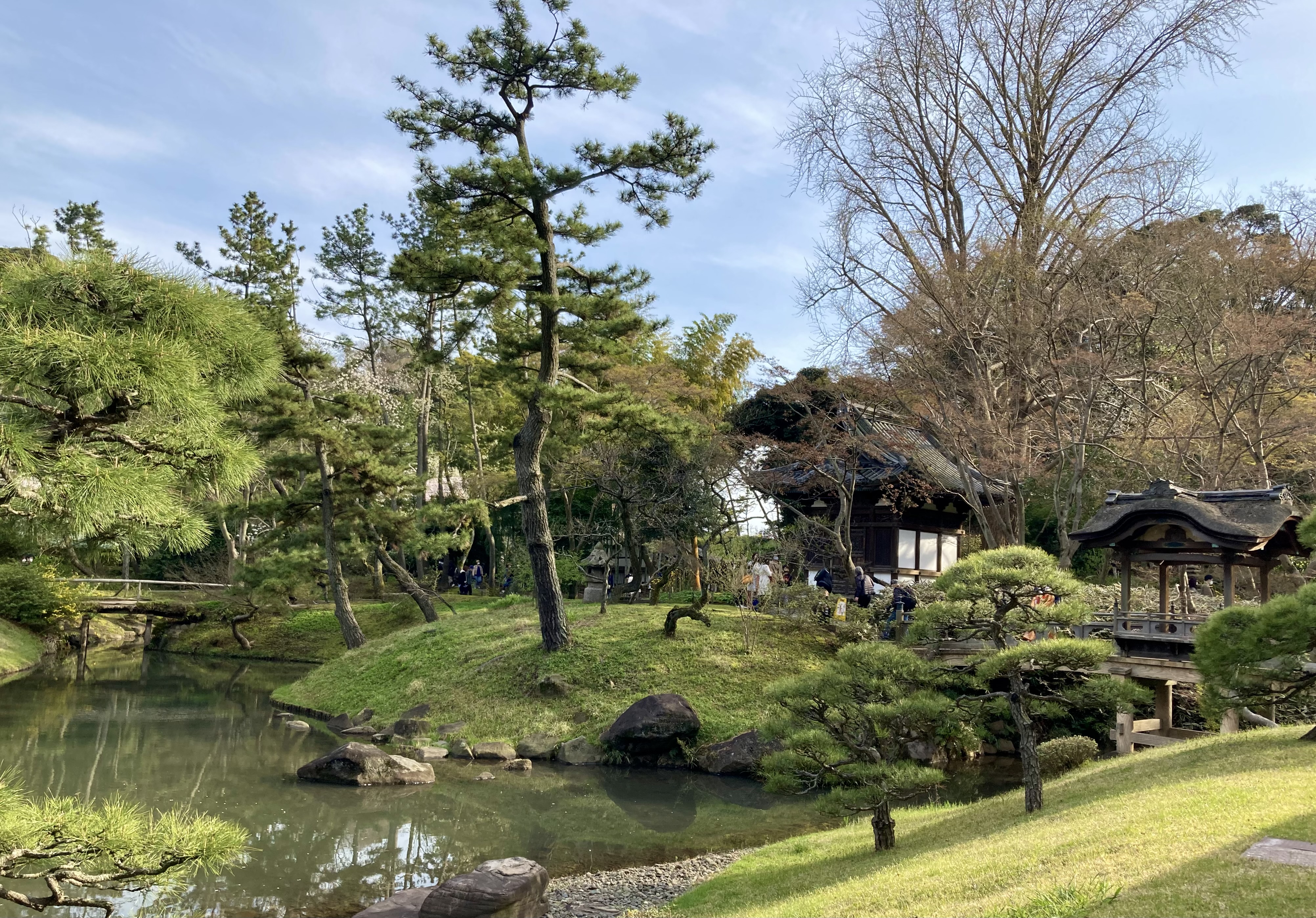 맨 처음 방문했을 때가 겨울 막바지였어서 소나무 말고는 나뭇가지만 앙상하게 남은 나무들만 있었는데도 나름대로 멋진 풍경이었다. 못에는 물고기(잉어?)들이 사는데, 산케이엔 내에서 판매하는 물고기 먹이를 구매해서 먹이도 줄 수 있다. 그리고 건축물들 중에는 안에 들어갈 수 있는 건축물들도 있어서 일본의 옛날 주택의 내부 등을 구경할 수 있다.