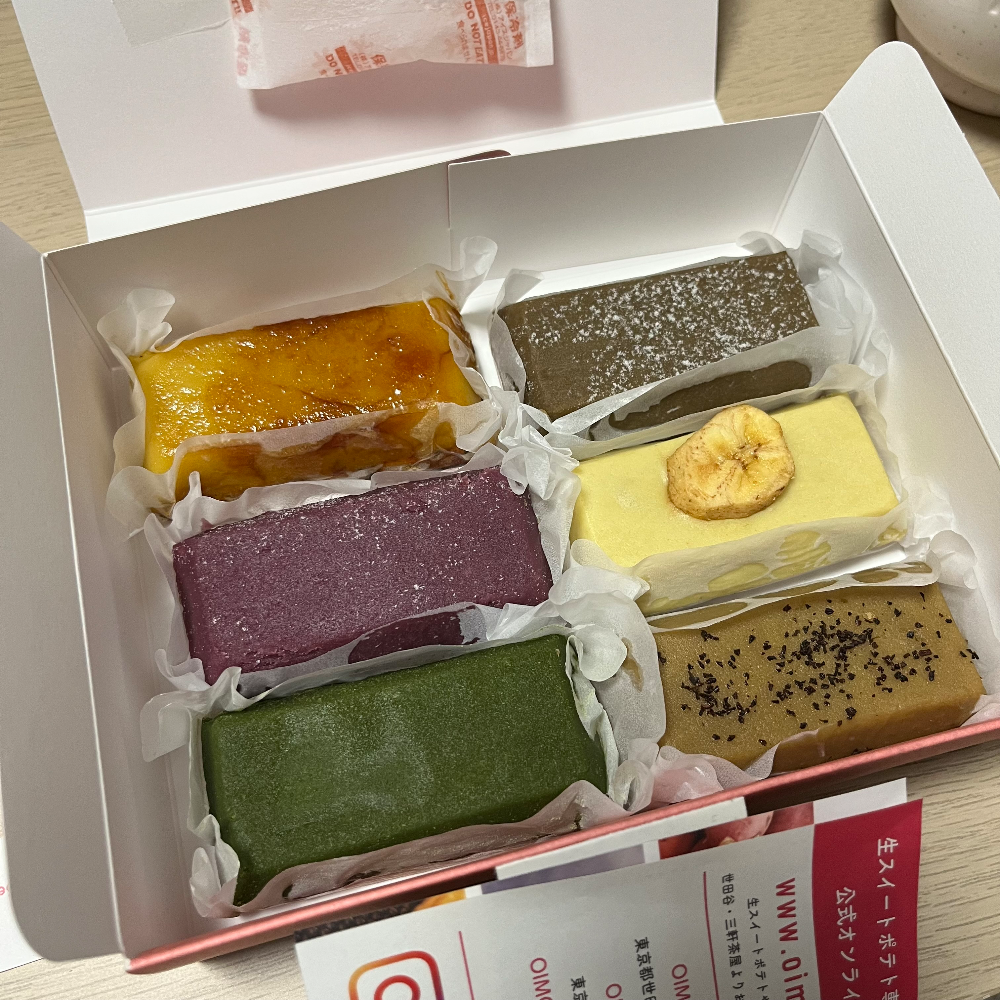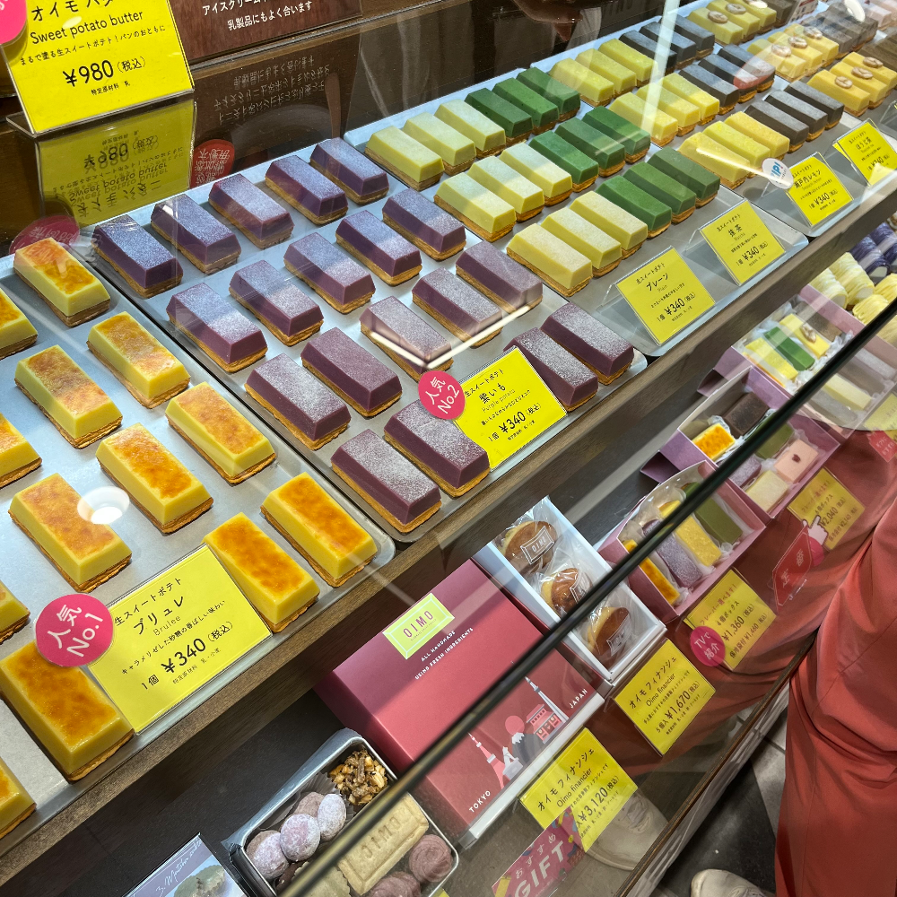 도쿄역을 거쳐서 귀가를 할 때가 있었는데, 야식으로 먹을만한 게 없을까 싶어서 도쿄역 내부를 하릴없이 돌아다니다가 오이모 (OIMO 홈페이지)라는 디저트 가게가 눈에 띄어서 사 먹어 보았다. 방문한 지점은 도쿄 기프트 팔레트점 (東京ギフトパレット店 구글맵)이다.