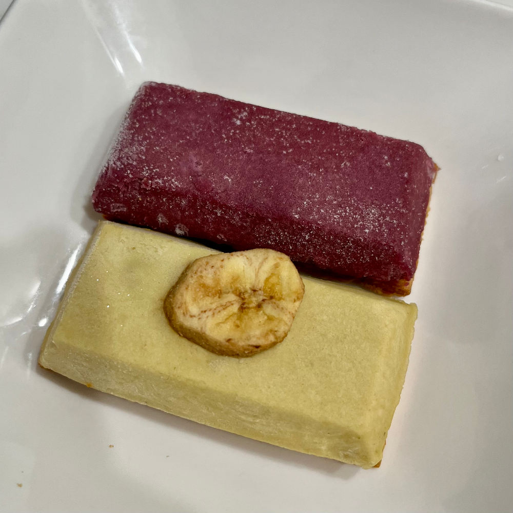 페스츄리같이 겹겹이 쌓인 파이 반죽 위에 단단한 고구마 무스가 올라간 한입 케이크 같은 느낌이다. 생각보다 달지 않았고, 그 단 맛도 설탕을 때려 넣어서 만든 단맛이라기보다는 고구마의 단맛을 최대한으로 살린 느낌이었다. 먹는 방법 3개로 다 먹어봤는데, 개인적으로 5~15분 해동해서 먹는 방법이 가장 맛있었다.
