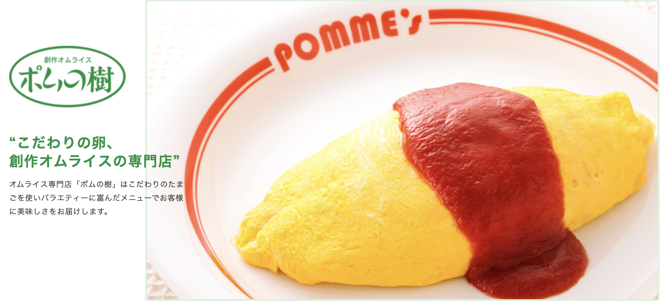 포무노키(ポムの樹 홈페이지 바로가기)는 오므라이스를 주 메뉴로 제공하는 일본의 오므라이스 전문 레스토랑 체인이다. 1990년대에 오사카에서 창업하여 현재는 일본 전국에 지점을 운영하고 있다. "ポムの樹"의 "ポム"은 프랑스어로 사과를 의미하는 "pomme"에서 유래했는데, 왜 사과라는 의미가 들어가 있는지는 잘 모르겠다. 회사 홈페이이지에 이에 대한 내용이 딱히 언급되어있지 않아서 서치로 찾아본 결과, 나와 같은 의문을 가지고 있는 사람들이 많았는지 질문은 많이 올라와 있었지만 납득할만한 이유는 없었다.