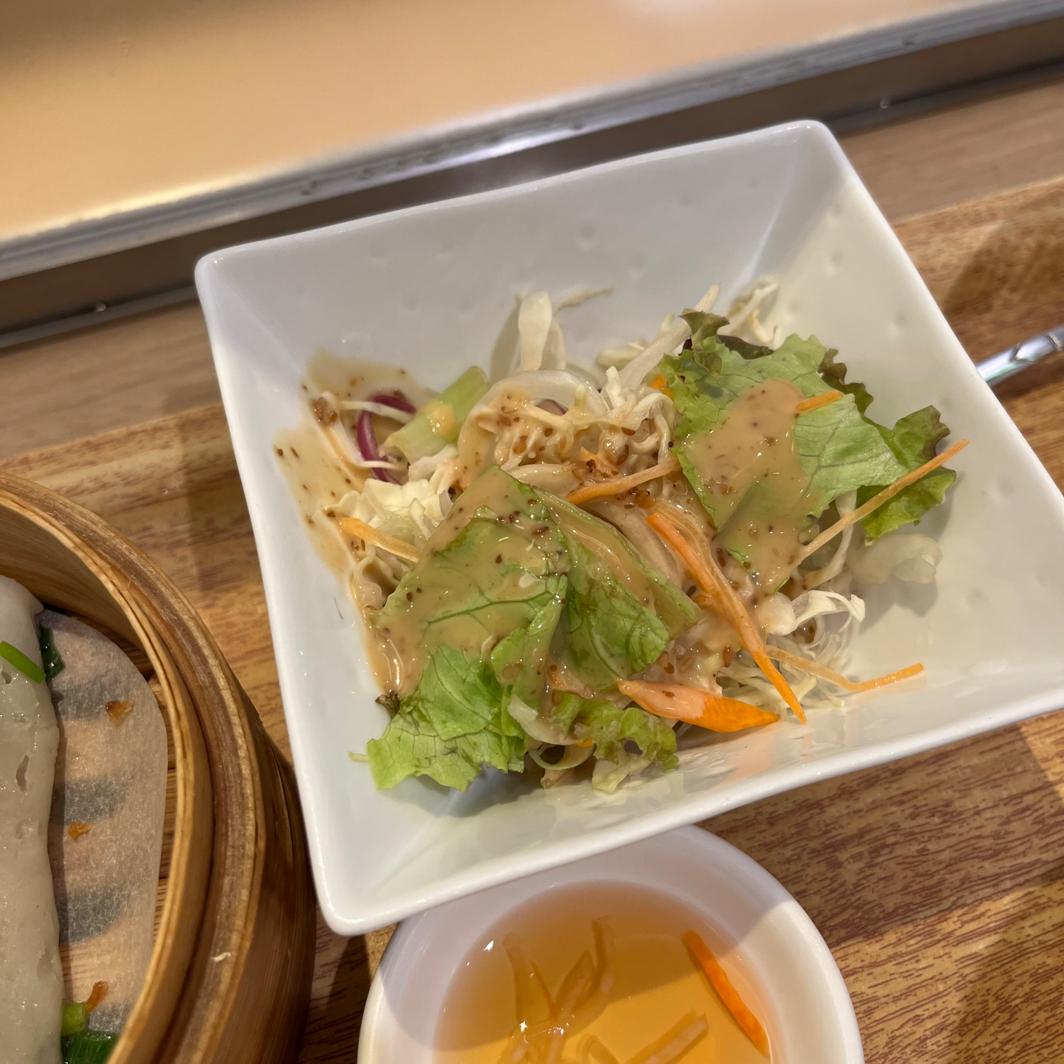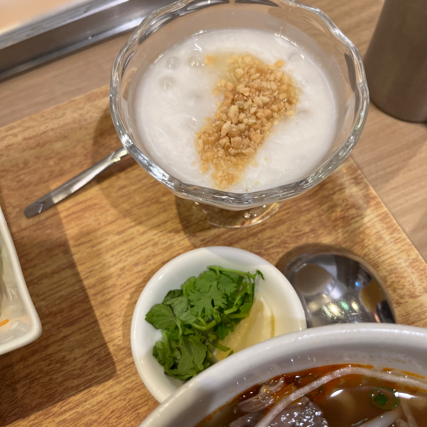 샐러드는 일본에서 흔히 쓰는 큐피 고마드레싱을 뿌린 평범한 샐러드였고, 디저트는 땅콩가루가 올라간 코코넛 죽 같은 거에 작은 버블 같은 게 들어 있는 달달한 무언가였다. (이름이 있기야 있겠지.. 하지만 난 모르지)