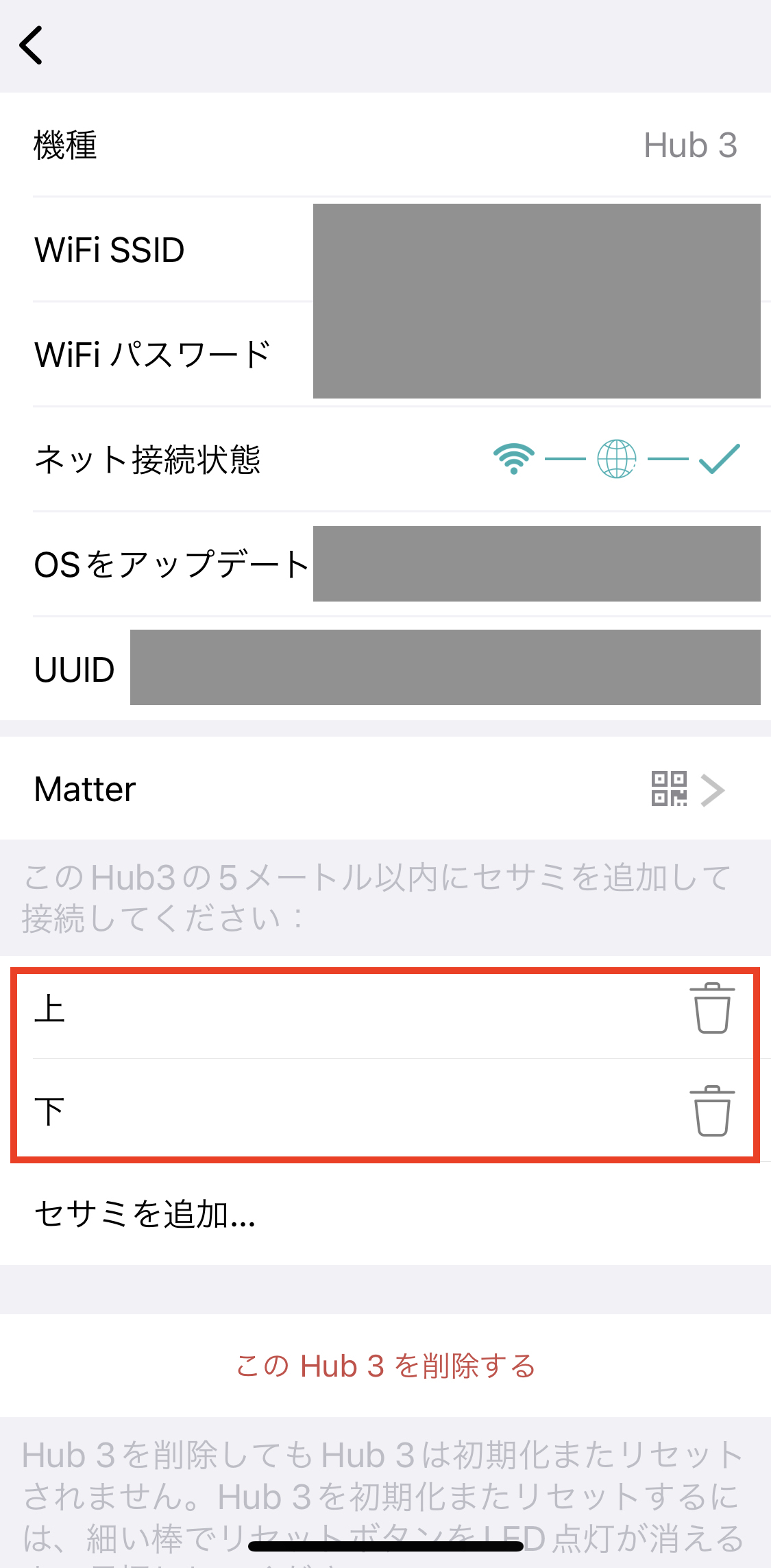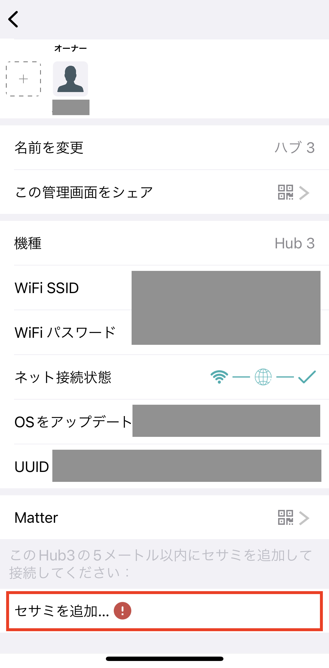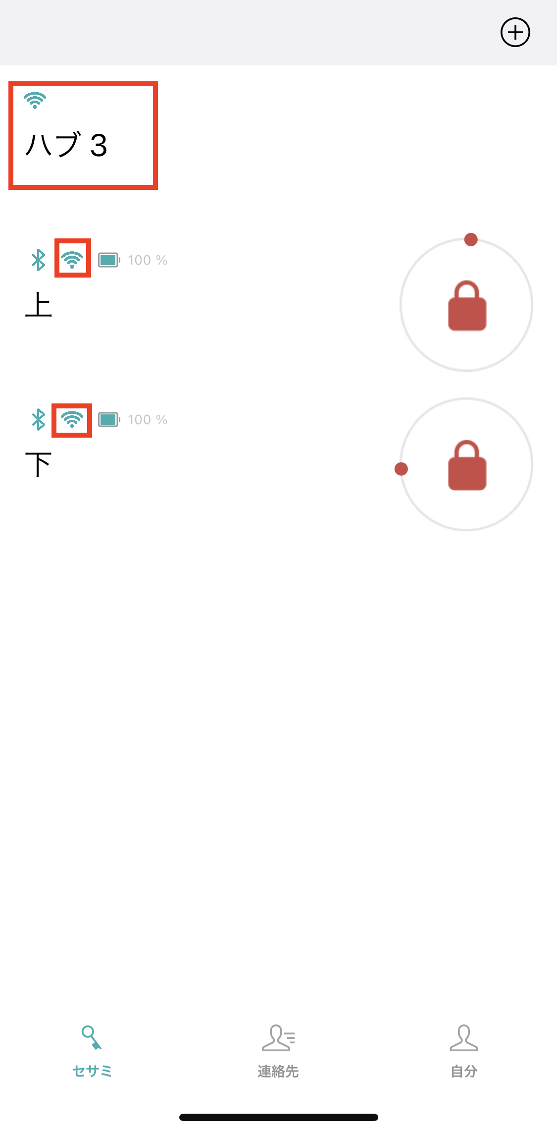 세사미 제품을 사용하려면 기본적으로 セサミ라는 앱이 필요하다. 내 앱의 경우 저번 포스팅에서 등록해 놓은 오토락 기기들이 이미 등록되어 있는 걸 볼 수 있는데, 여기에 추가로 허브를 등록해야 한다. 앞으로의 과정을 계속 허브 3에 전원을 공급한 상태에서 진행한다.