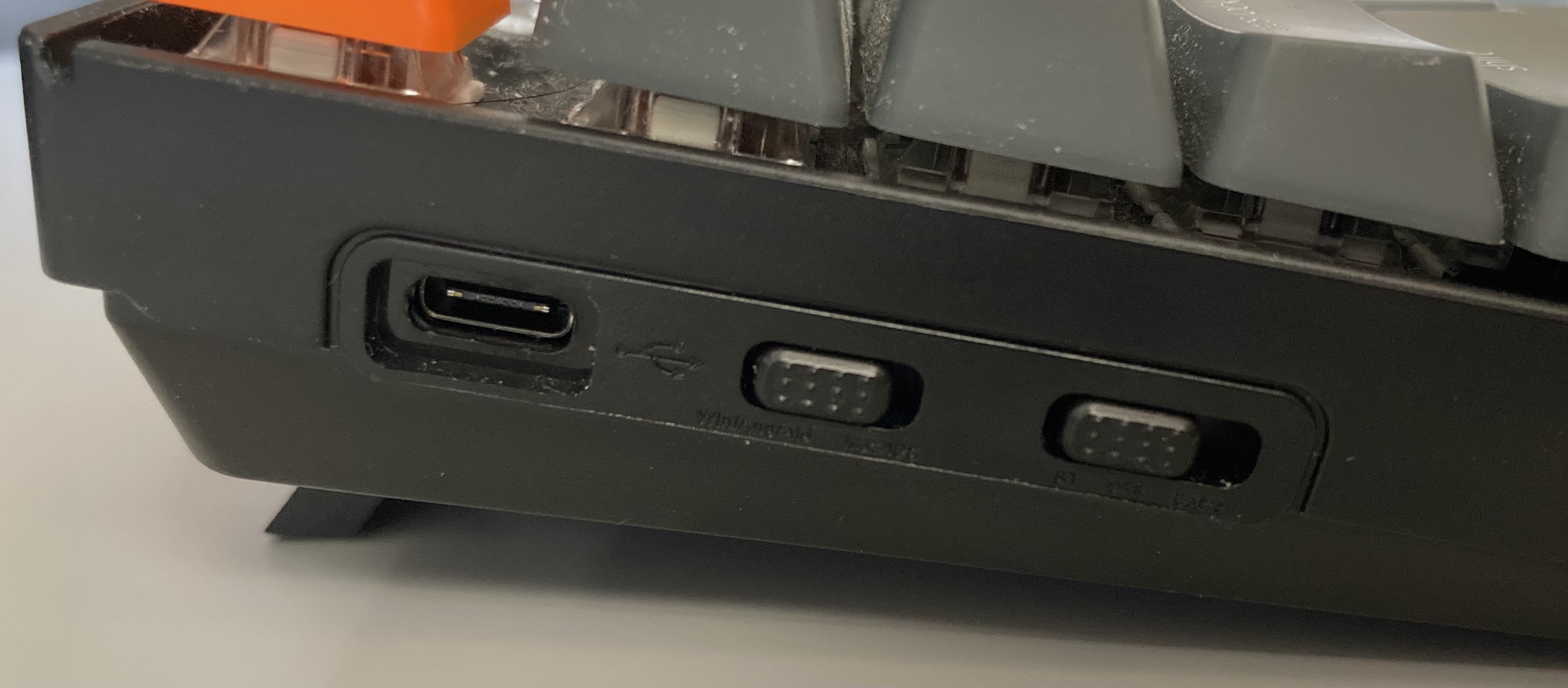 키캡은 본체에 맥용이 디폴트로 세팅이 되어있고, 윈도우즈용은 여분으로 챙겨주는 방식이었다.(근데 키캡 분리해서 넣어준 거 치고는 안 바꿈ㅎ) 맥과 윈도우즈의 전환은 좌측에 달린 스위치식 버튼으로 간단히 전환이 가능하다. 또한, 케이블을 제공하듯이 유선으로도 사용 가능하고 무선으로도 사용 가능한 제품으로, 유/무선의 전환 역시 좌측에 달린 스위치식 버튼으로 전환이 가능하다. 무선 사용 시 키보드 배터리 잔량 표시는 배터리 부족 시 방향키 위의 LED 등에 적색 라이트가 점등이 되는데, 이때 키보드의 충전은 꼭 제공된 케이블이 아니어도 된다. 그리고 무선 연결은 블루투스 방식으로 이루어지며 3개까지 페어링이 가능하다.