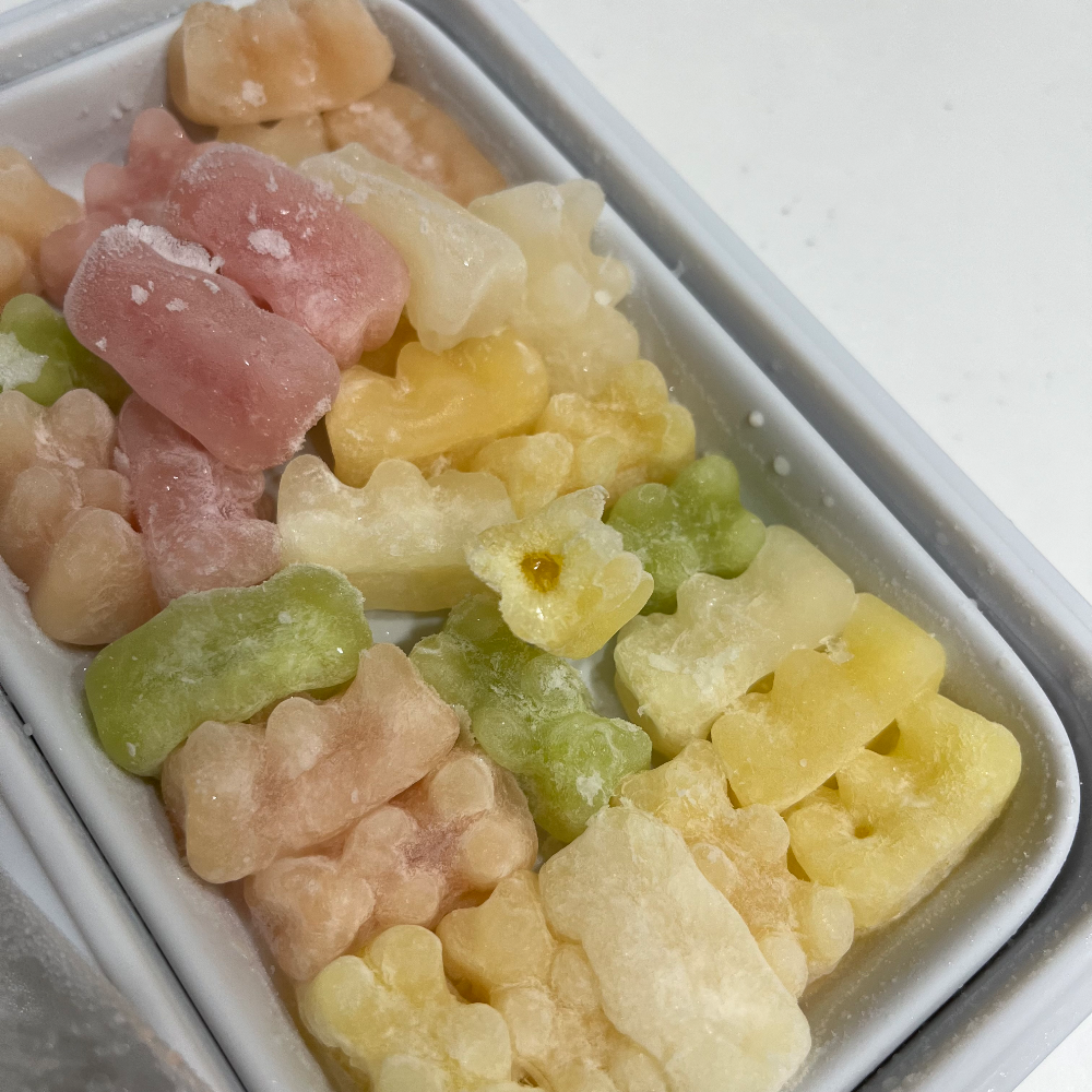 젤리들을 그대로 냉장고로 보내서 하루(24시간) 정도 얼려주면 이런 얼음젤리가 완성.