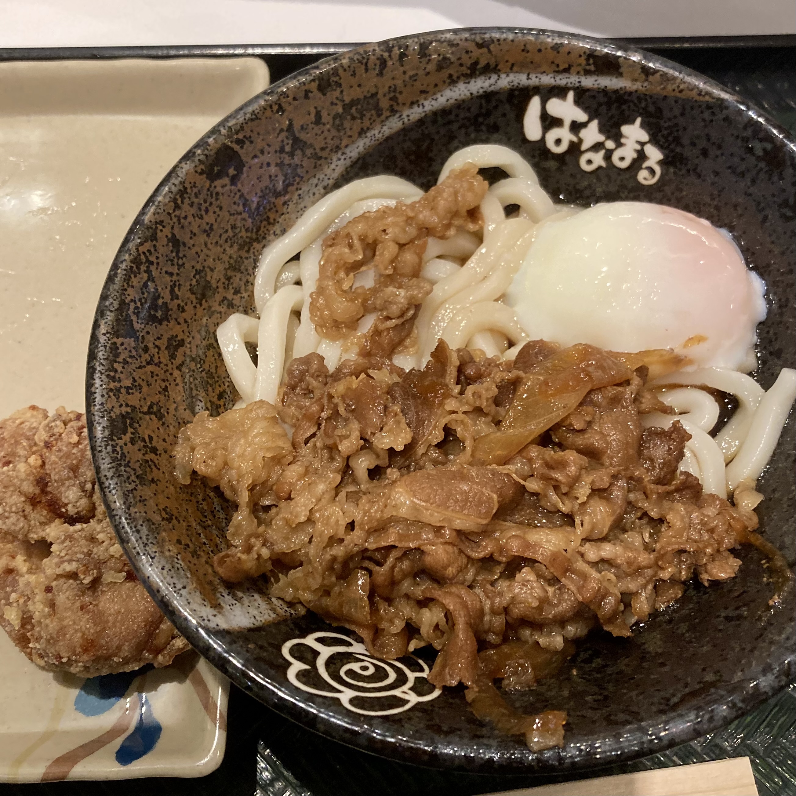 내 하나마루 원픽은 소고기 온천 달걀 붓카케 (牛肉温玉ぶっかけうどん) 우동. 맨날 다른 거 먹어봐야지 하면서도 결국은 이거 주문해서 사진도 이것뿐이다. 샐러드 우동이 궁금하긴 해서, 진짜 언젠간 먹어볼 것이다... 우동 대신 튀김을 매 번 다르게 먹는 편이다. 최근에 카라아게가 새로 나와서 먹어 봤다. 튀김도 무난하게 다 맛있는 편인데 그래도 그중에서 추천하자면 카키아게랑 치쿠와텐. 마이타케텐 (마이타케는 한국어로 잎새버섯이라고 한다. 처음 들어봤다.) 도 향이 좋고 흔한 튀김은 아닌 것 같아서 추천.