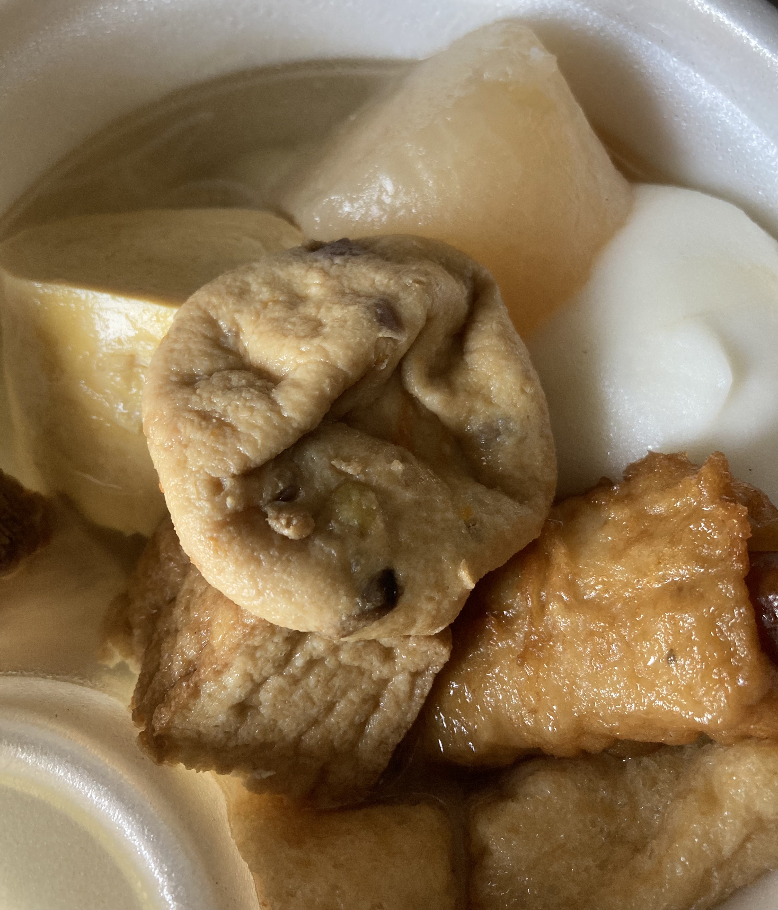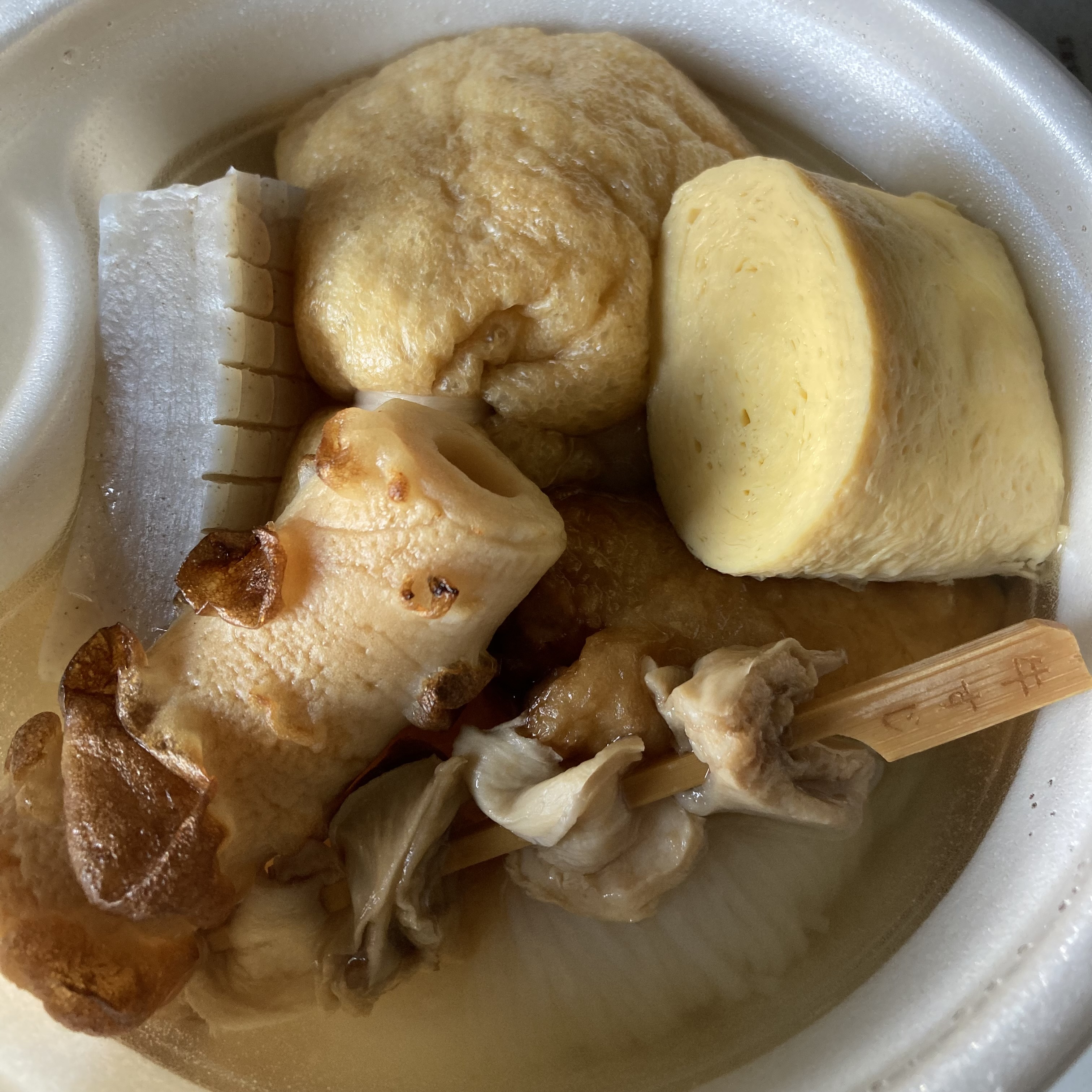 제일 위에 있는 게 쯔유다쿠간모(つゆだくがんも)라고 처음 먹어 봤는데 간모가 한국어로 뭔지는 모르겠으나, 얇은 건두부를 겹겹이 쌓아 올린 느낌의 반죽에 야채가 송송 박혀있는 음식이다. 맛있었음.