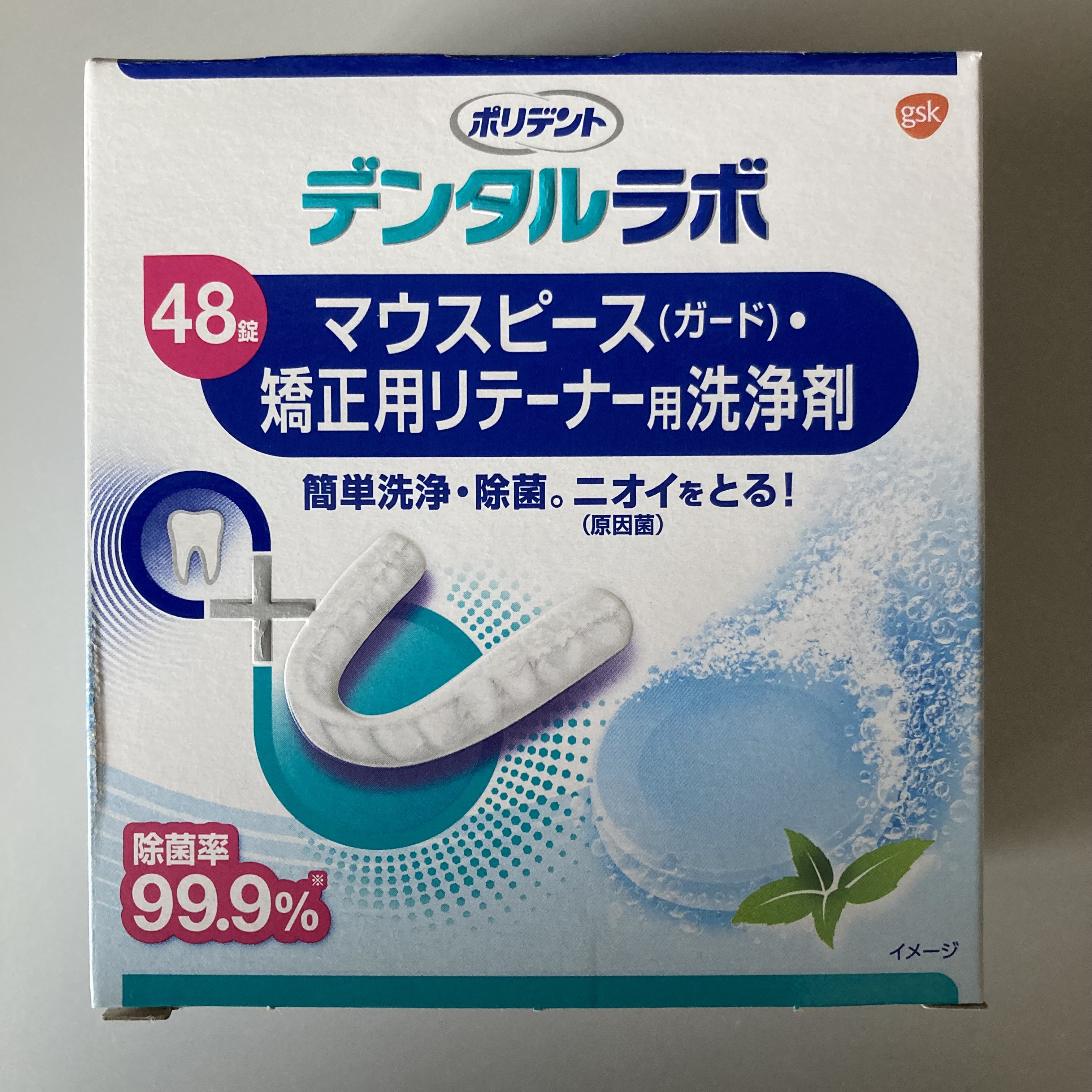 어금니는 칫솔이 잘 닿지 않으니까 상대적으로 충치 걸릴 확률이 높다 치지만 치아 사이 충치의 원인이 뭘까하고 생각을 해봤다. 나는 예전에 교정을 했기 때문에 밤에는 치아 교정 유지장치를 끼고 자는데, 혹시 이게 세척이 잘 되지 않아서 세균이 남아 있었고 그게 충치의 원인이 되었을 수도 있지 않을까 싶었다. 그래서 요즘에 광고를 많이 때리는 덴탈라보(デンタルラボ)라는 마우스피스, 마우스가드, 치아 교정 유지장치 세척 제품을 구매해 보았다. 48정이 들은 제품을 구매했고, 가격은 772엔이었다.