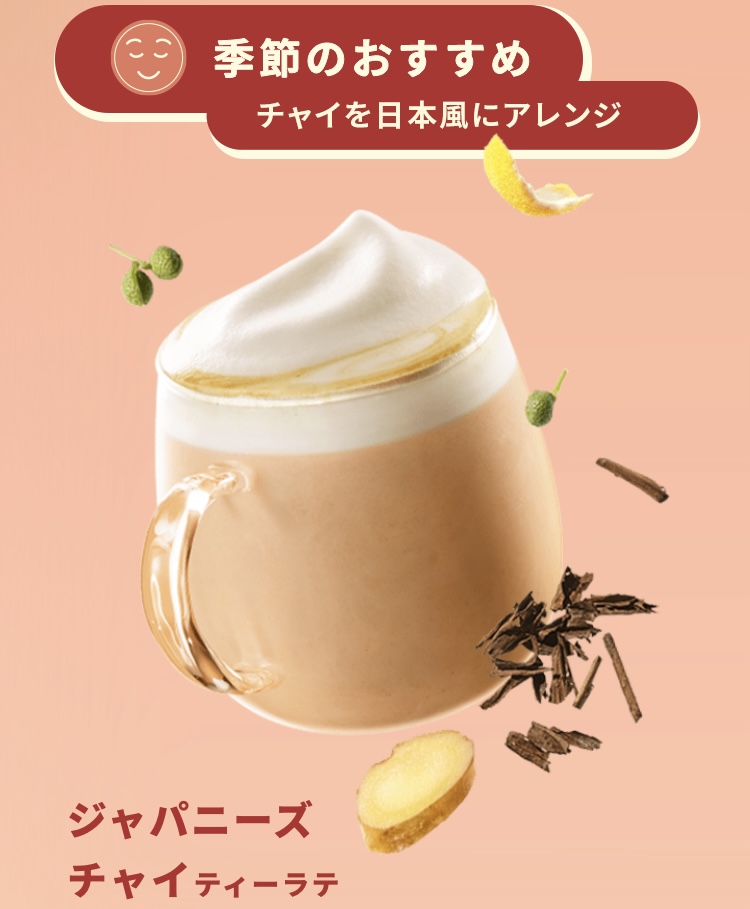 Short 550엔, Tall 590엔, Grande 635엔, Venti 680엔 - 기존 메뉴 어레인지: 재패니즈 차이 티 라떼 (ジャパニーズ チャイティーラテ)