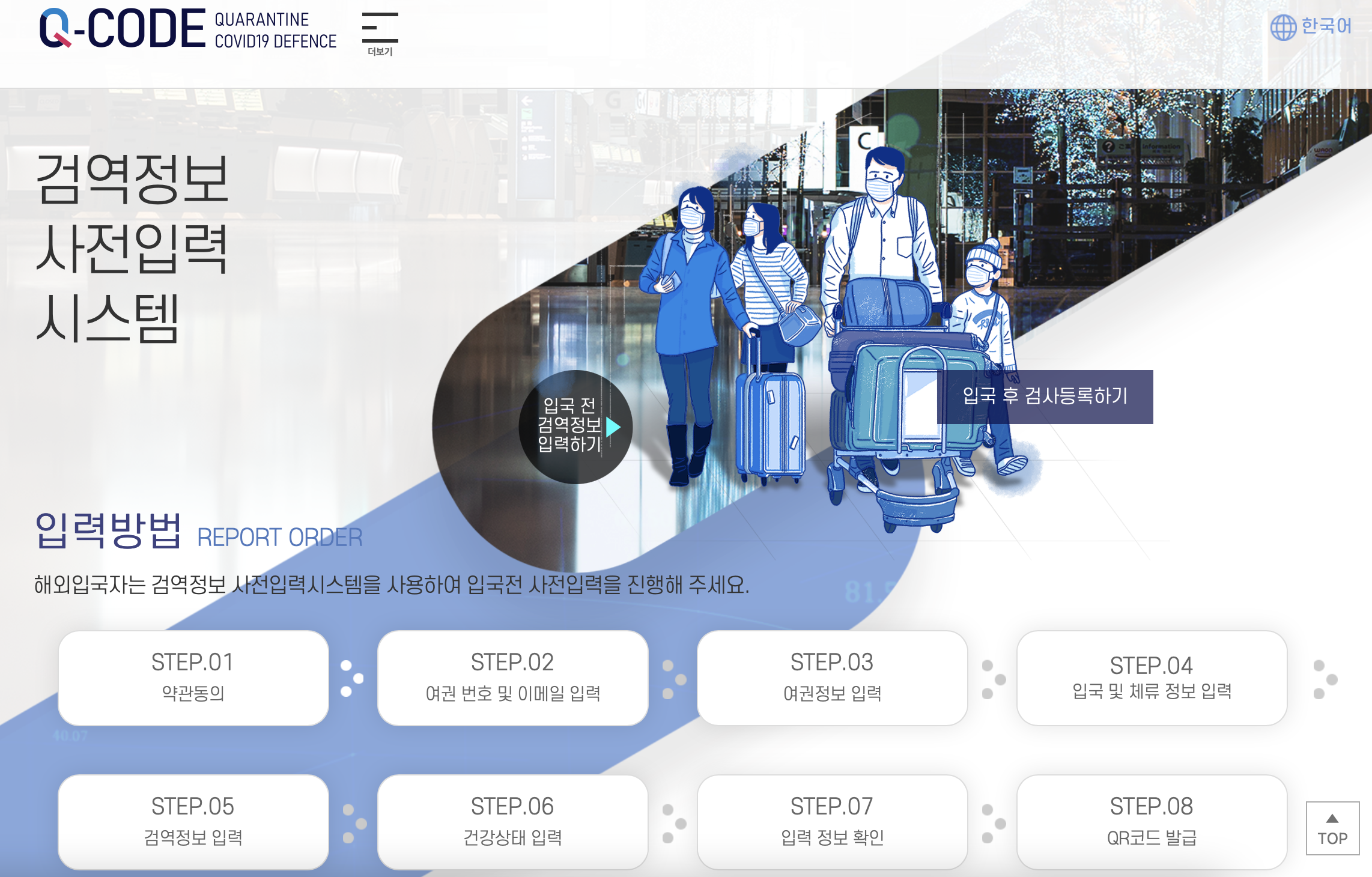 ① 한국에 입국하기 위해 Q CODE에서 QR코드 발급받기
