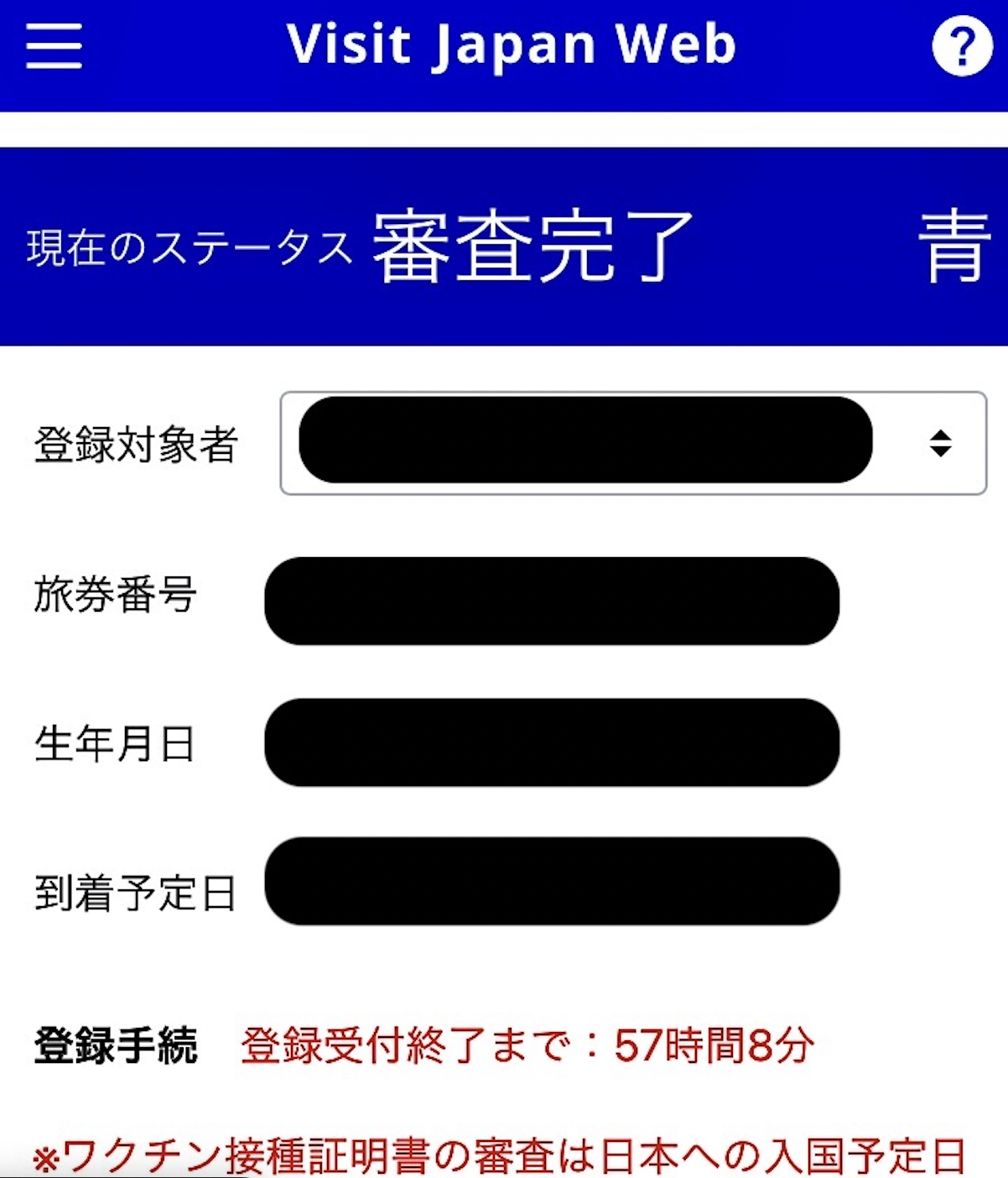 ① 일본에 입국하기 위해 패스트 트랙 스테이터스 '青(심사완료)'를 받기
