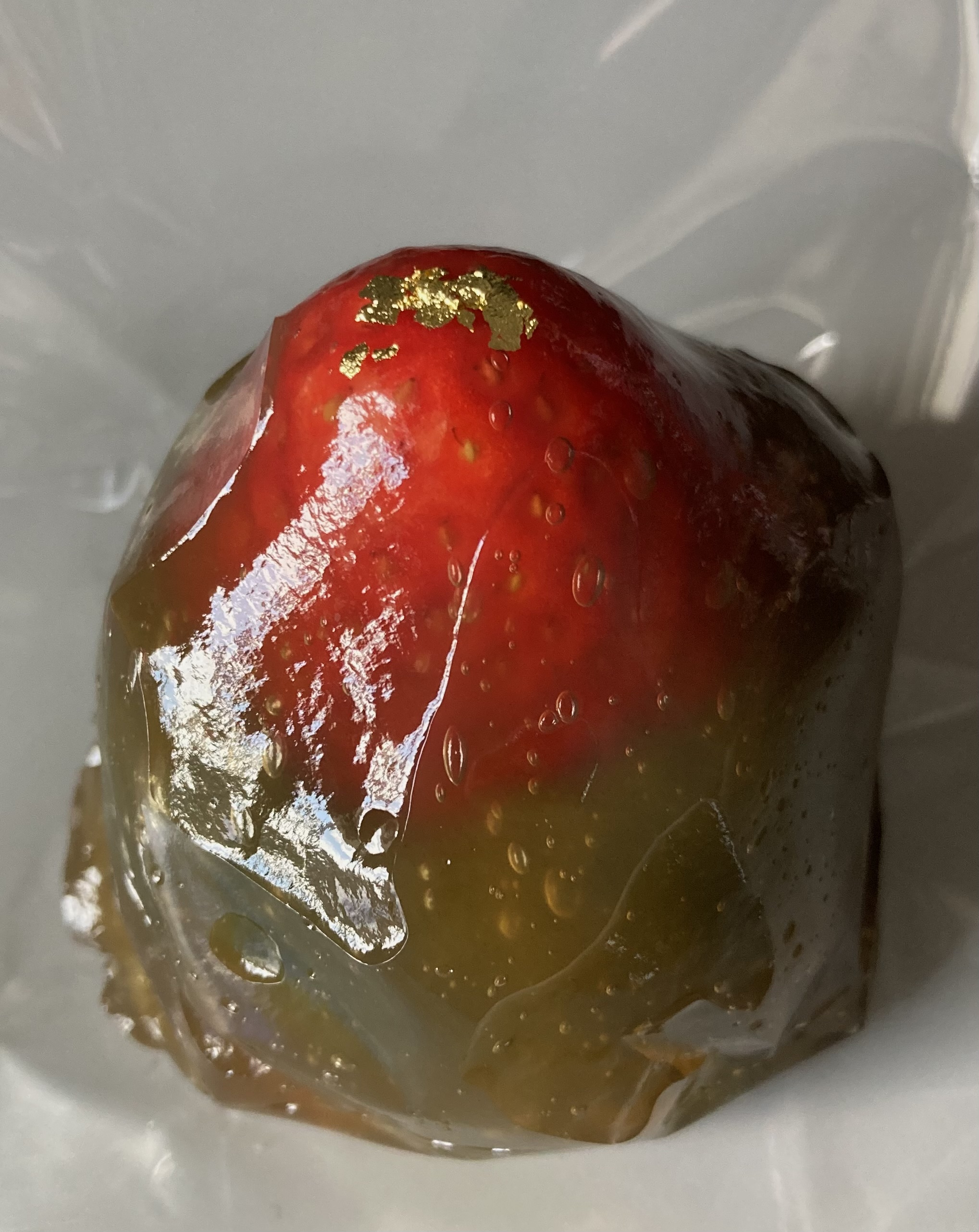 사진으로는 되게 예쁘게 생겼는데, 실물은 꼭 그렇지도 않았다. 와라비 모찌다 보니까 너무 비닐자국이 선명하게 나있어서ㅋㅋㅋ 그래도 조합의 신박함 점수는 95점. 말차맛은 식용 금박이, 코시앙은 키나코가 뿌려져 있다. 개인적으로 말차앙이 더 맛있었다. 코시앙은 너무 흔한 맛이고, 말차앙은 말차맛집답게 굉장히 진한 게 내 취향이었다. 그런데 앙금이 있고, 와라비 모찌가 있어도 사실 딸기 비중이 80%인 생김새 그대로 딸기가 다하는 맛이다. 나머지 재료는 거들뿐. 딸기 자체가 맛있어서 맛있게 먹을 수 있었다.