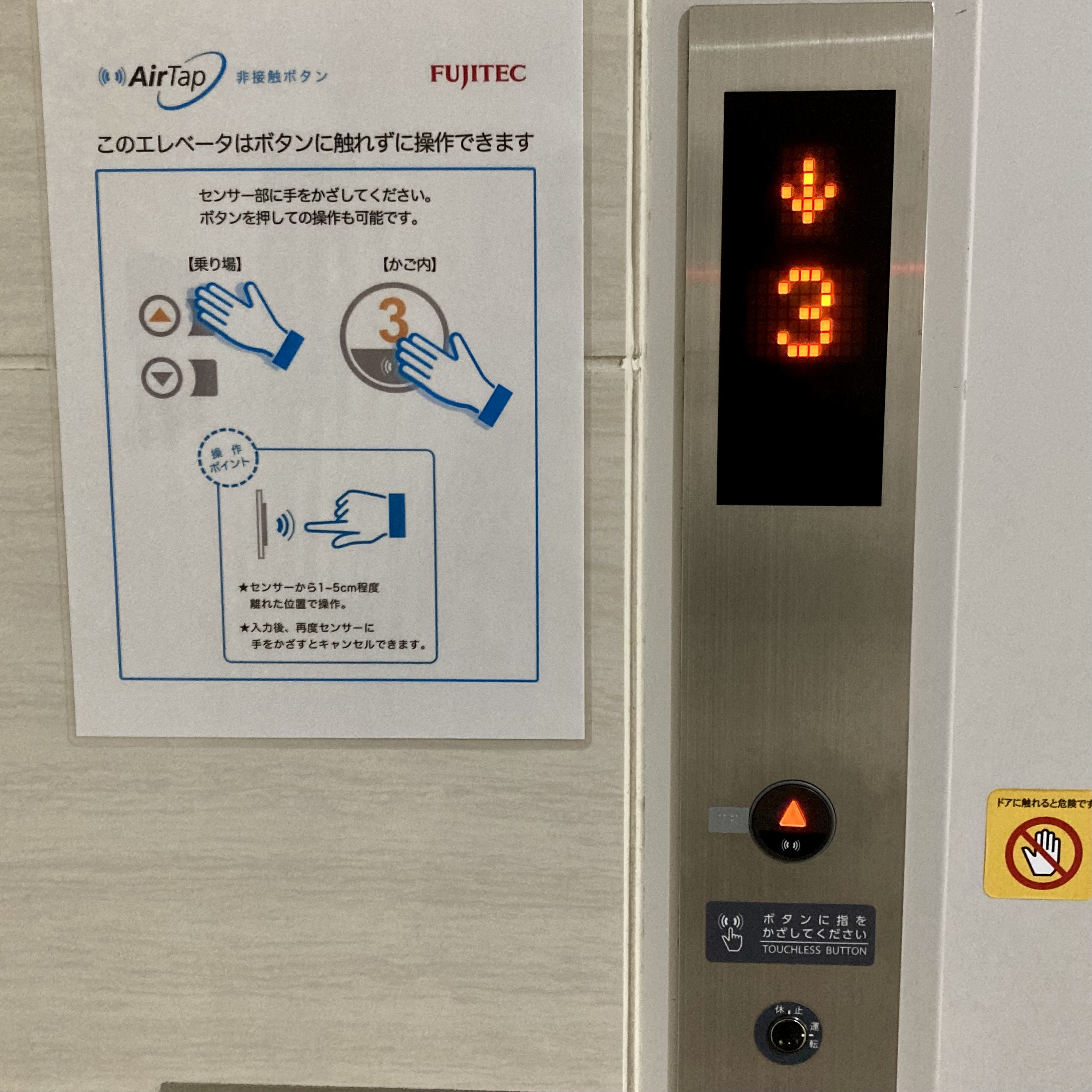 다니고 있는 치과 건물에 엘리베이터 버튼이 처음 보는 거라 신기해서 찍어놨길래 글로 써보겠다. 후지텍 제품인데, NFC처럼 터치도 아니고 그냥 손만 근처에 가져다가 대면 센서가 손을 인식해서 버튼이 눌리는 방식이다. 대역병 때문에 접촉 공포증이 생긴 사람들의 심리를 잘 상품화 한 케이스가 아닐까. 실제로 감염 예방도 할 수 있고. 아마 이 건물에 클리닉이나 병원이 많아서 빨리 도입이 된 게 아닐까 추측해 본다.